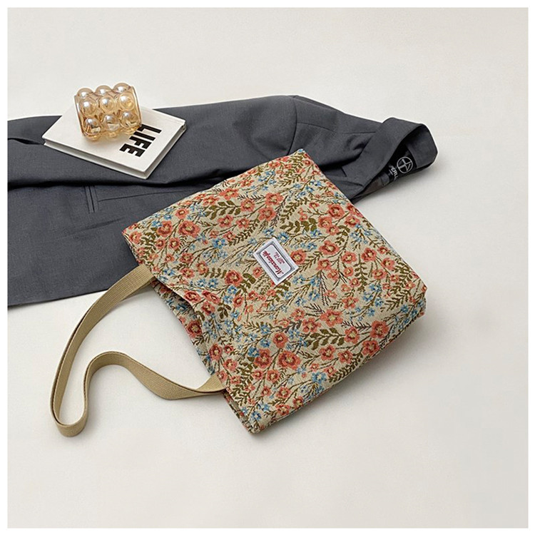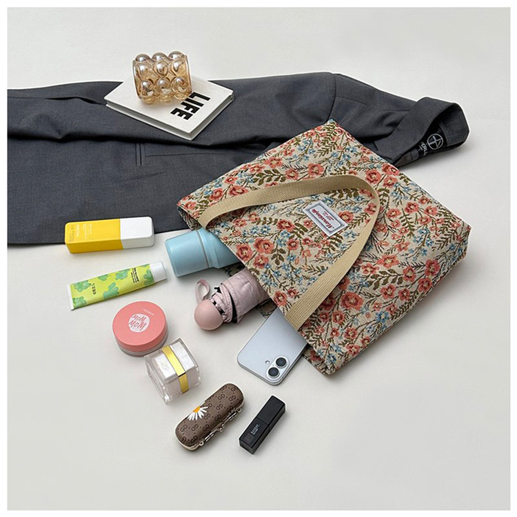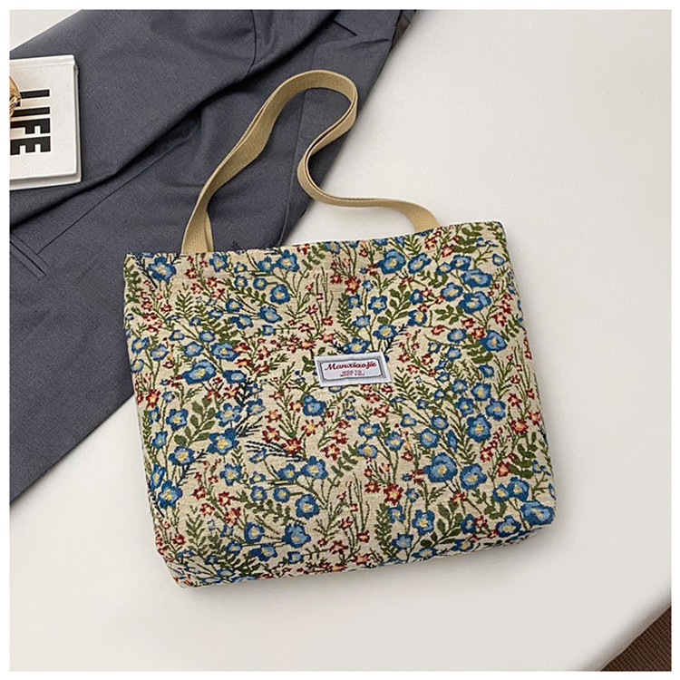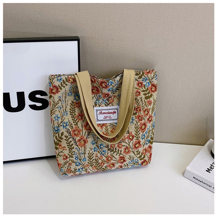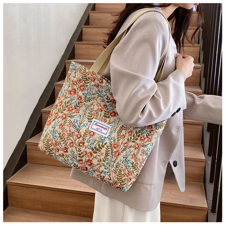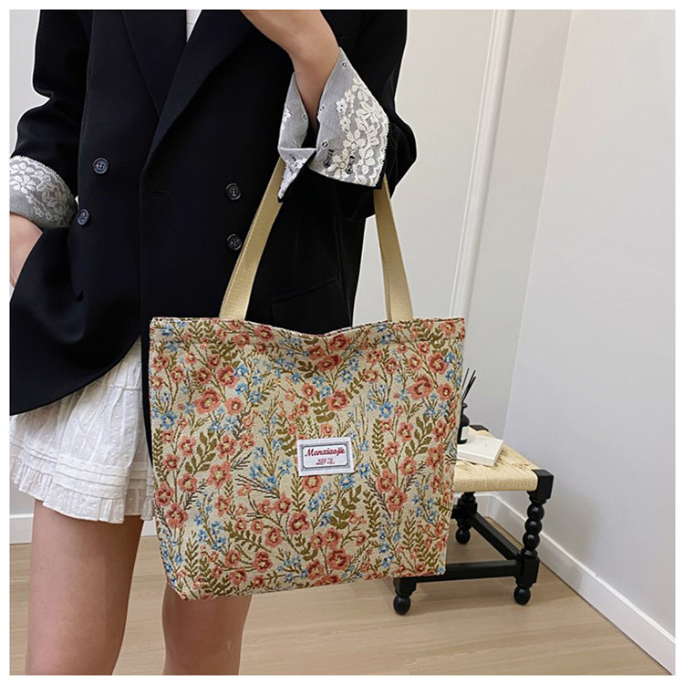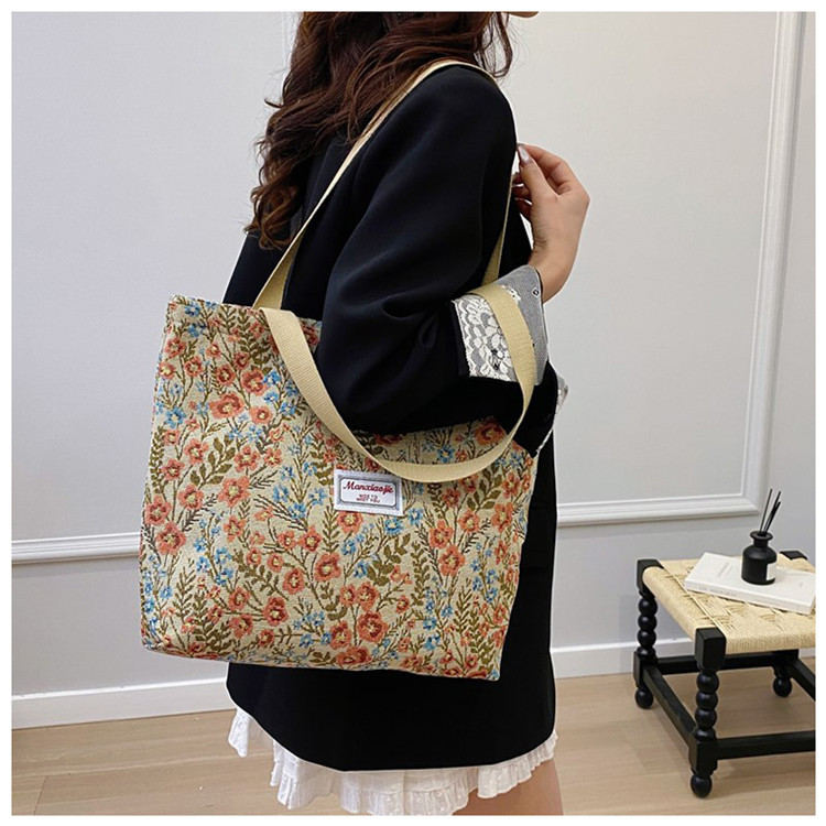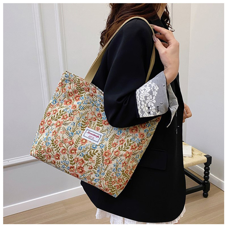 2025 국경 새로운 도착 대용량 꽃 인쇄 어깨 가방 캔버스 핸드백 여성용 캐주얼 스타일 토트 백스토어 가기