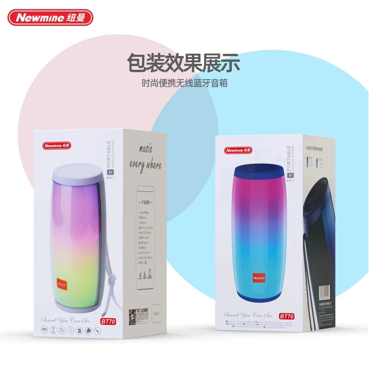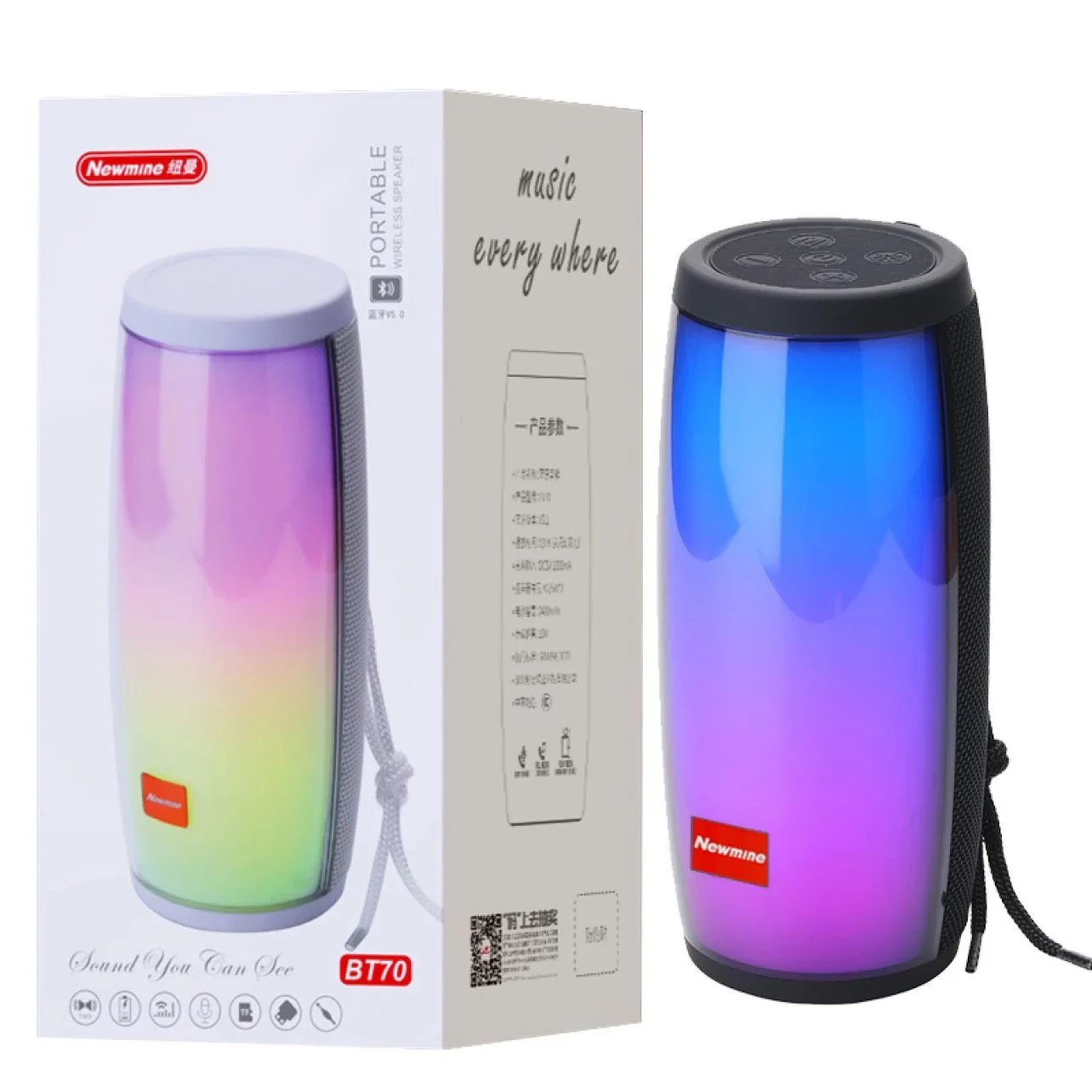 Newman BT70 무선 블루투스 스피커 대용량 배터리 세련된 휴대용 듀얼 스피커 멋진 조명 혼합 배치스토어 가기