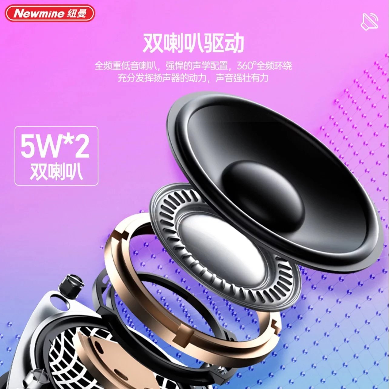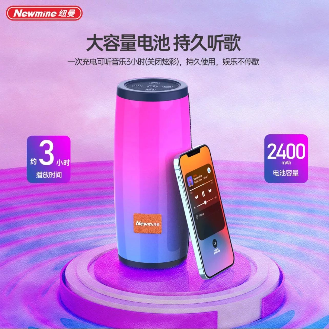 Newman BT70 무선 블루투스 스피커 대용량 배터리 세련된 휴대용 듀얼 스피커 멋진 조명 혼합 배치