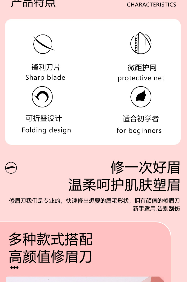 멀티 사양 박스형 눈썹 나이프 스크레이핑 칼 세트 메이크업 아티스트 뷰티 살롱 소녀의 특별 샤프 폴딩 눈썹 나이프