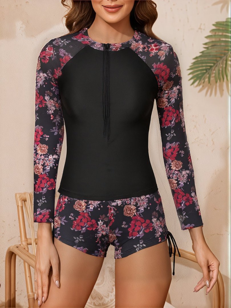 2025 유럽과 미국의 새로운 해변 온천 서핑 비키니 스타일 스플릿 긴팔 복서 하이 엔드 수영복 여성용