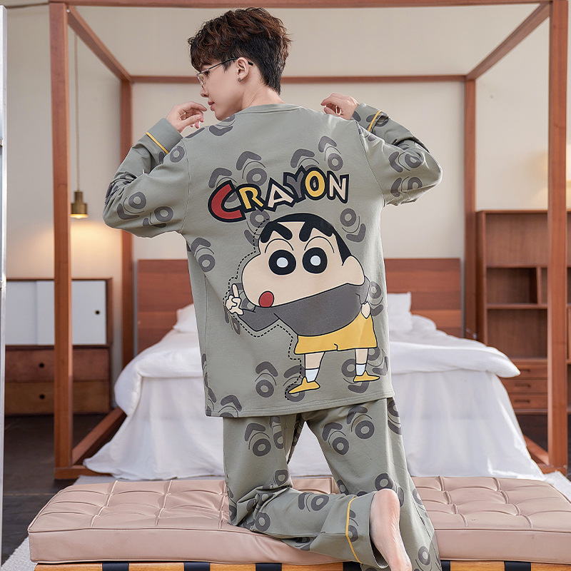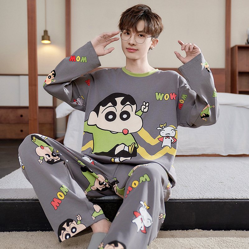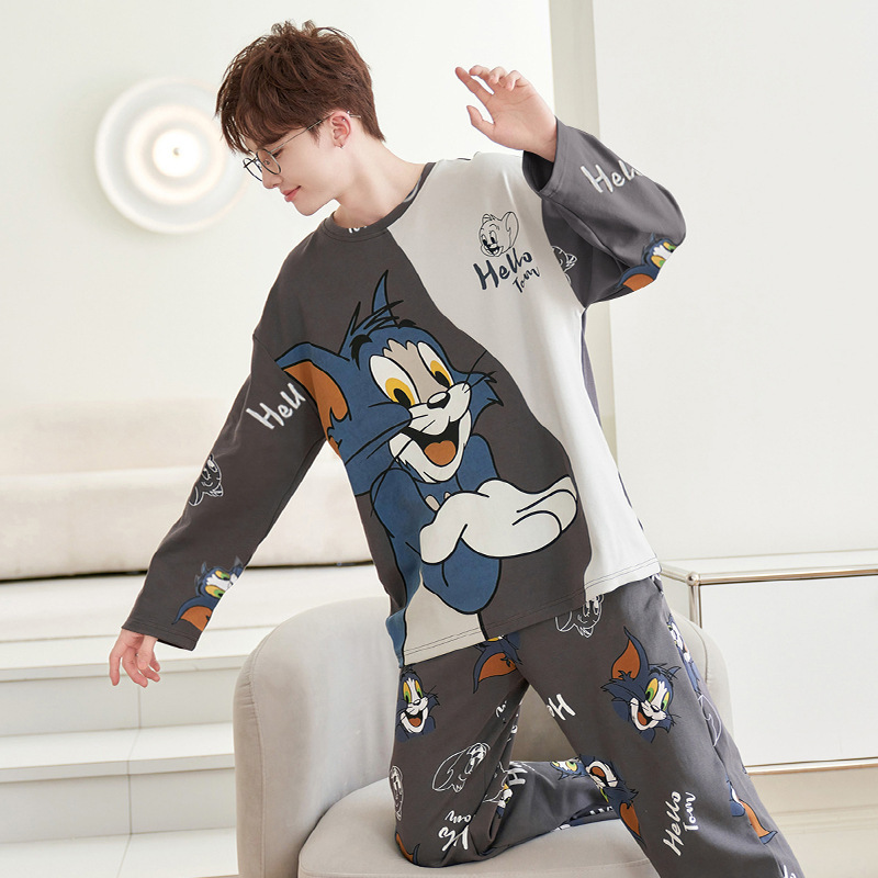 남자 잠옷 봄과 가을 긴 소매 2024 새로운 캐주얼 스포츠 플러스 사이즈 느슨한 외부 착용 여름 홈 옷