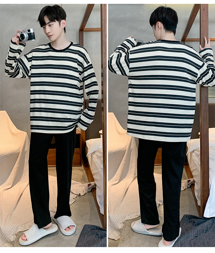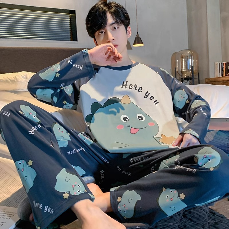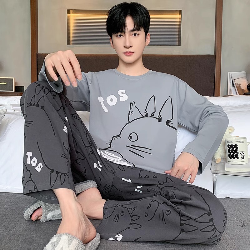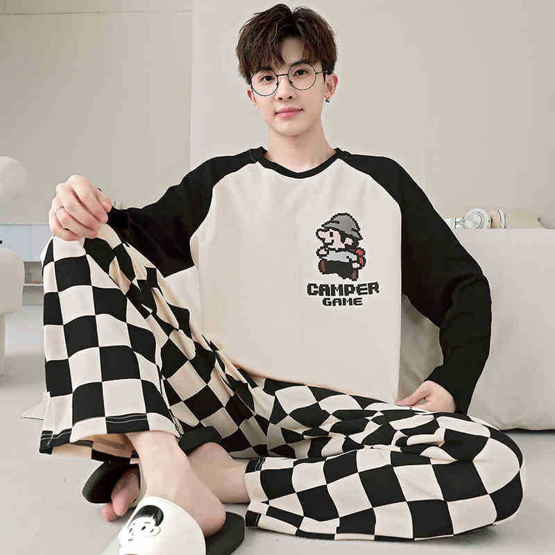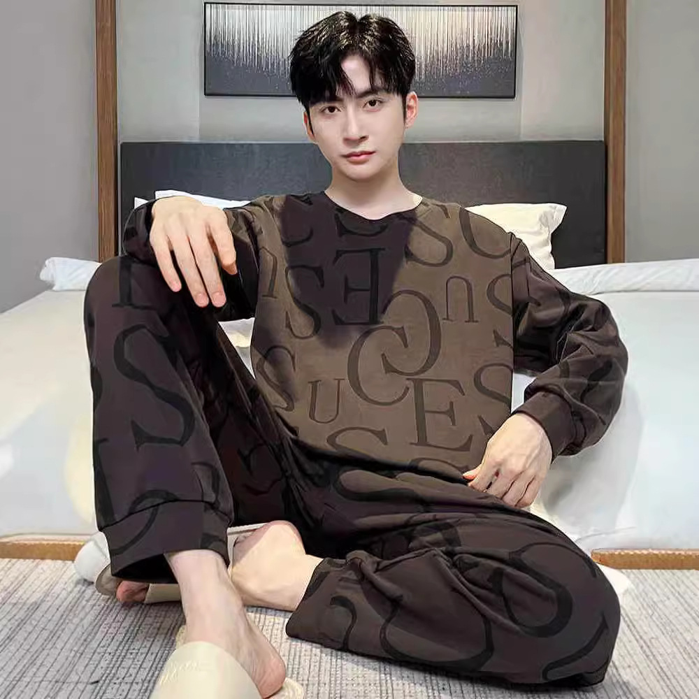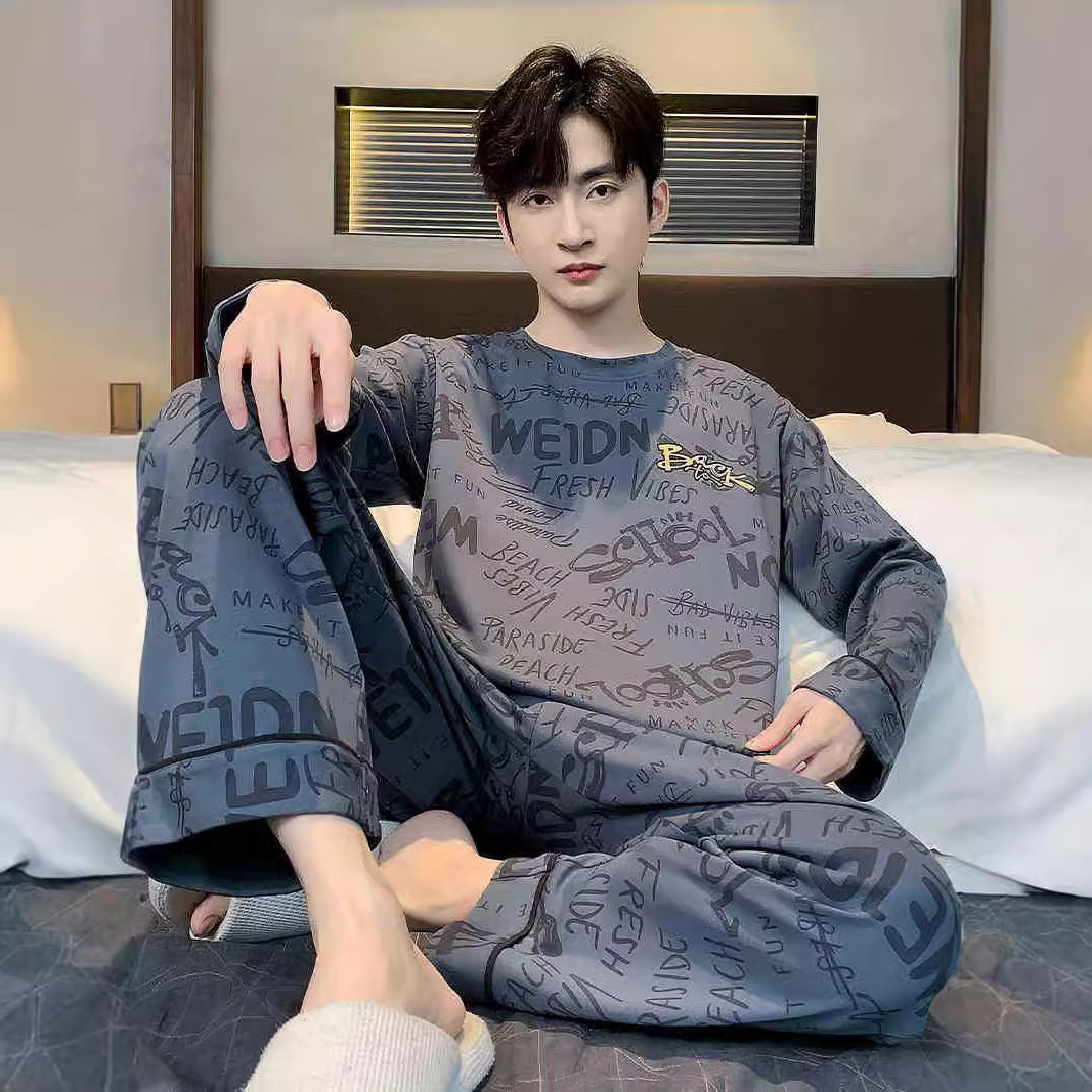 남자 잠옷 봄과 가을 긴 소매 2024 새로운 캐주얼 스포츠 플러스 사이즈 느슨한 외부 착용 여름 홈 옷스토어 가기
