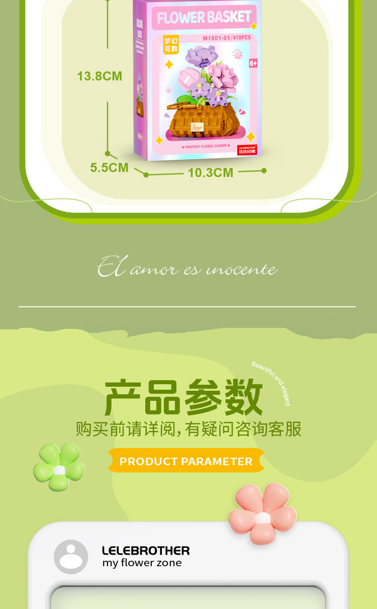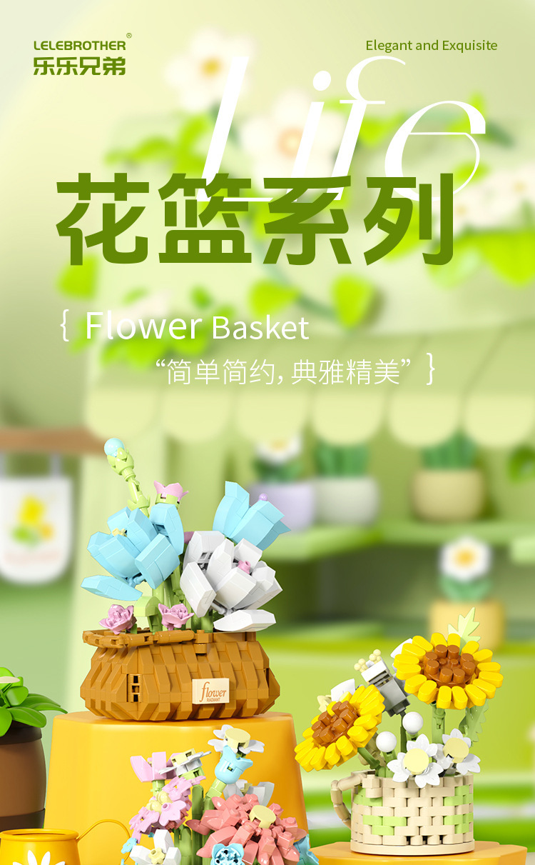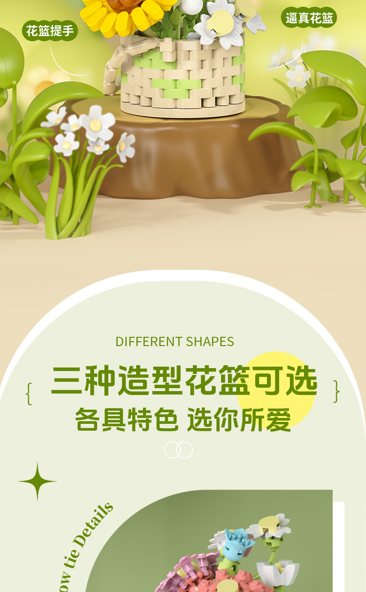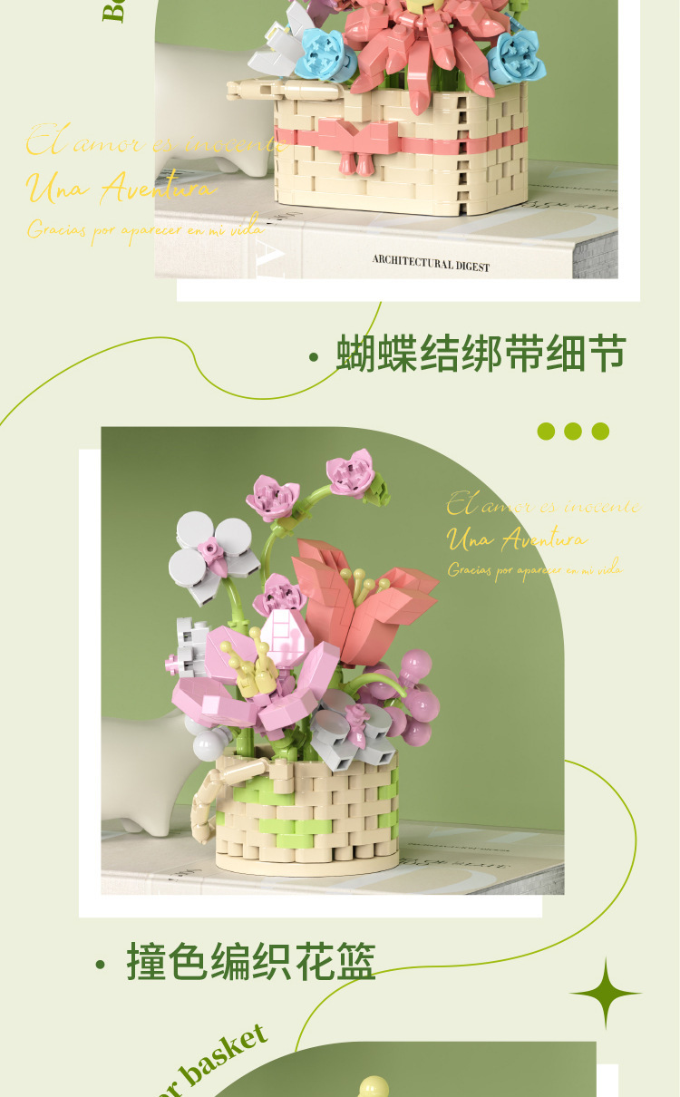 꽃 바구니 다육 식물 영원한 꽃 미세 입자 빌딩 블록 소녀 창조적 인 선물 호환 레고 어린이 교육 장난감스토어 가기