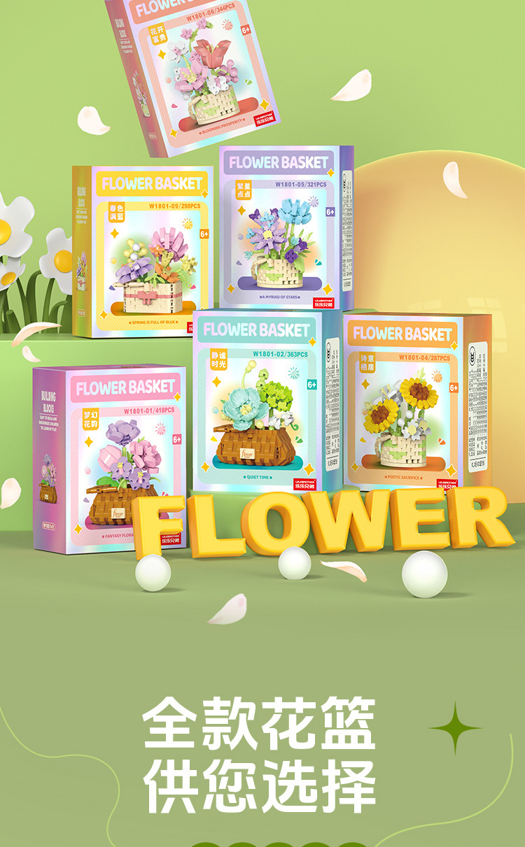 • W1801-8 꽃이 만발한(꽃바구니 포함) 컬러 박스