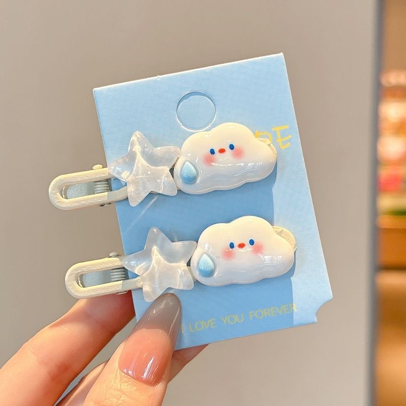 어린이를 위한 귀여운 구름과 별 머리핀, 여름용 인기 만화 여성용 사이드 앞머리, 어린이용 달콤한 덕빌 클립 머리 장식