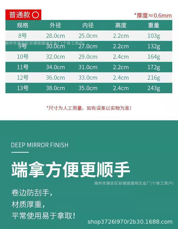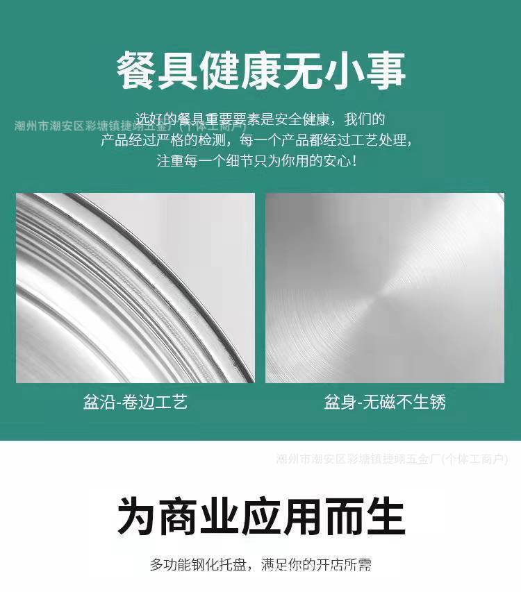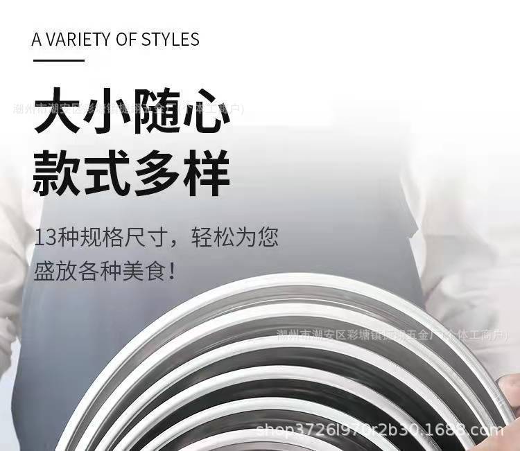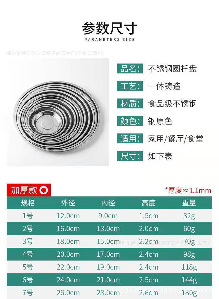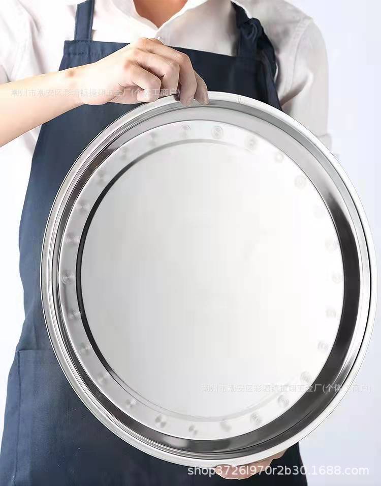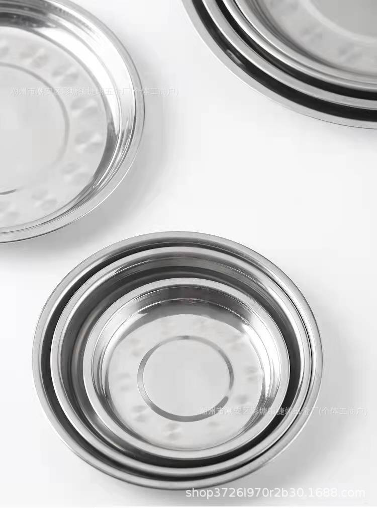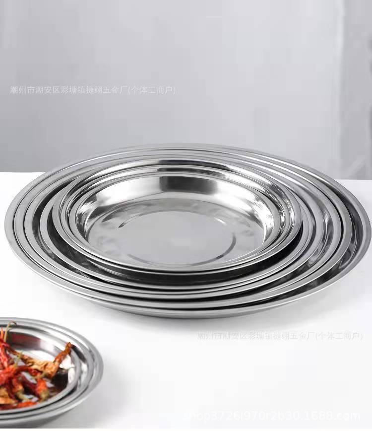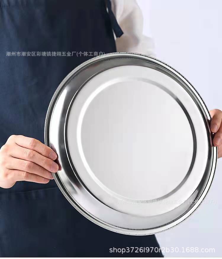 304 스테인레스 스틸 접시 라운드 가정용 접시 디저트 접시 두꺼운 아침 식사 접시 베이킹 팬 만두 접시 원형 접시