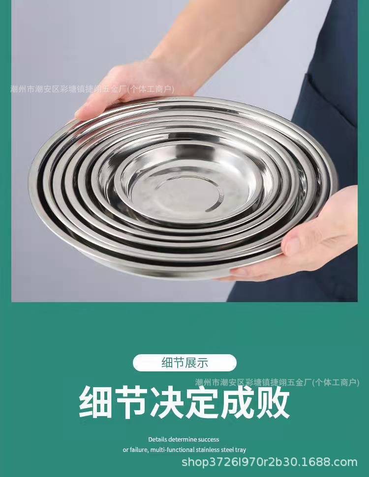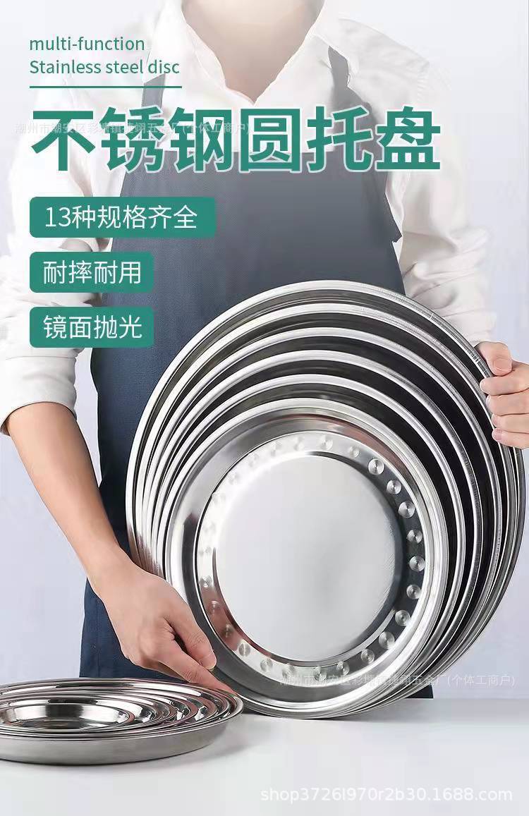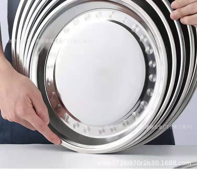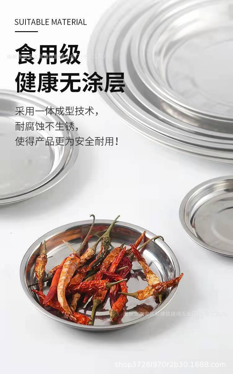 304 스테인레스 스틸 접시 라운드 가정용 접시 디저트 접시 두꺼운 아침 식사 접시 베이킹 팬 만두 접시 원형 접시스토어 가기