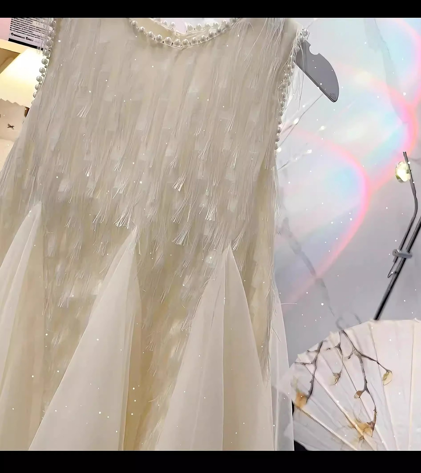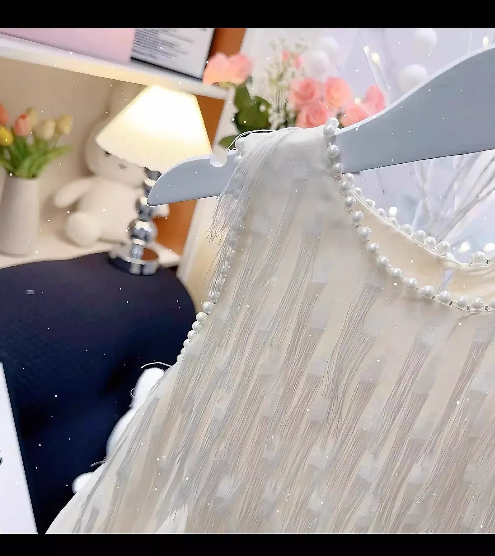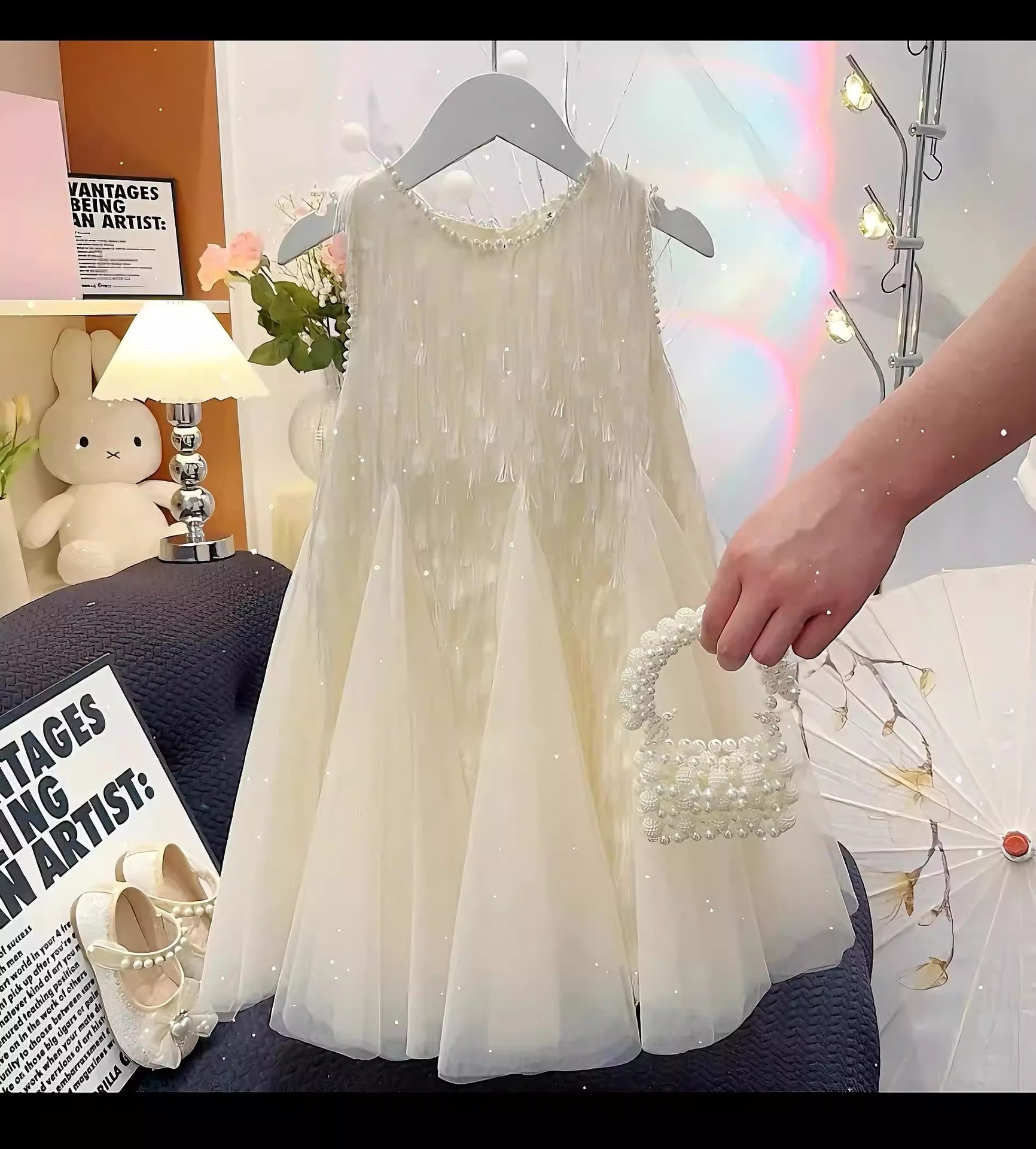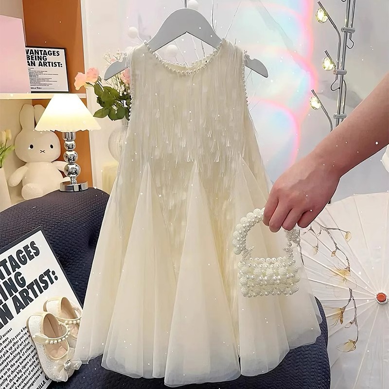 소녀 원피스 2025 여름 새로운 어린이 진주 술 베젤 원피스 소녀 원피스 우아한 공주 원사 원피스스토어 가기