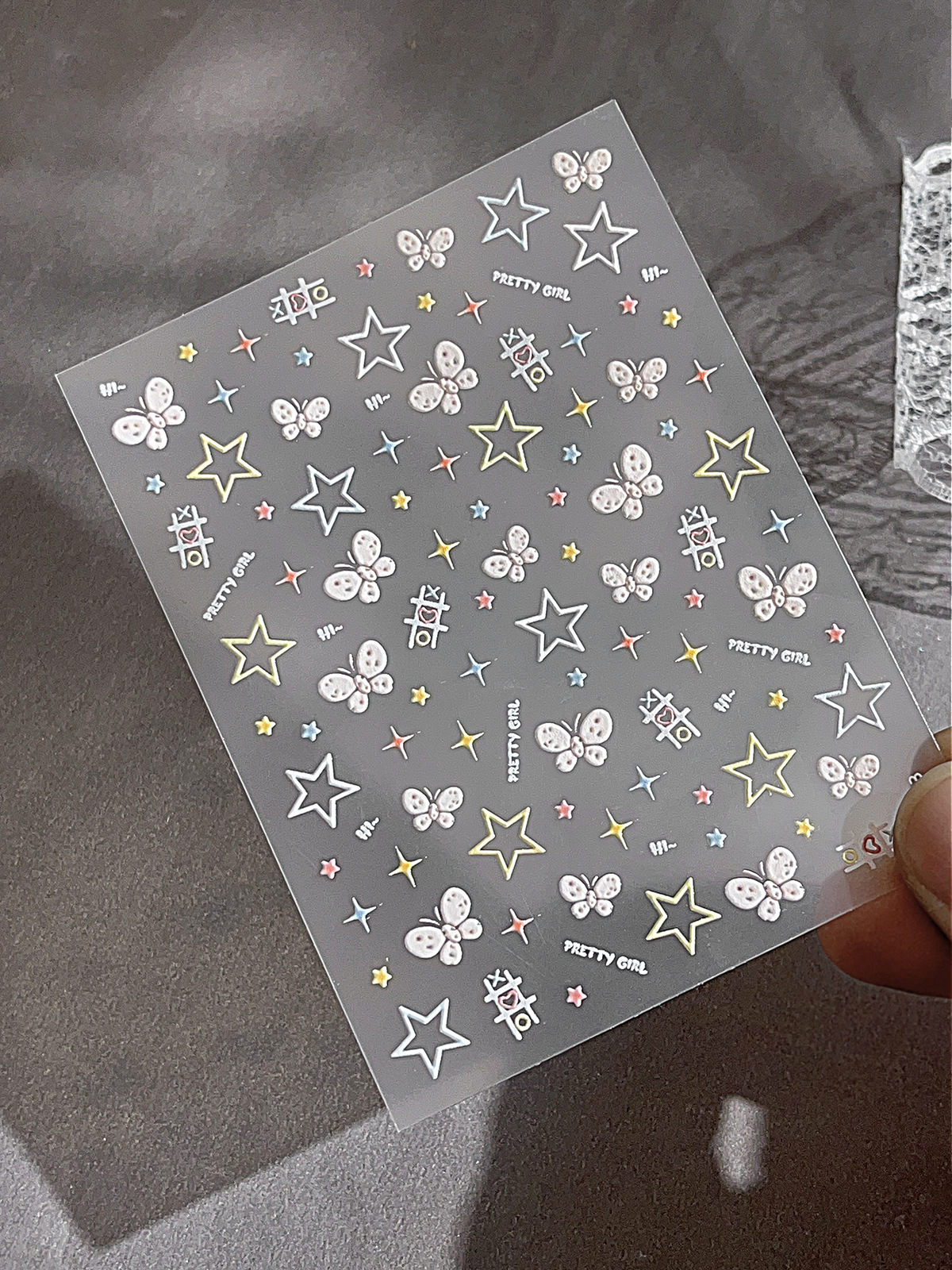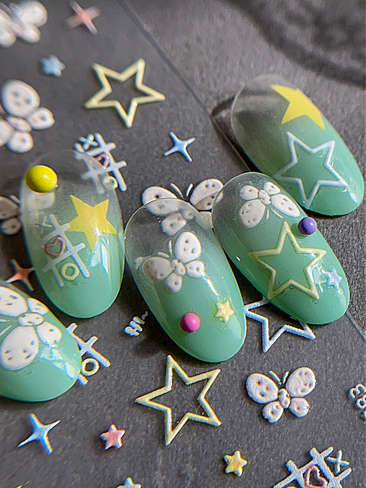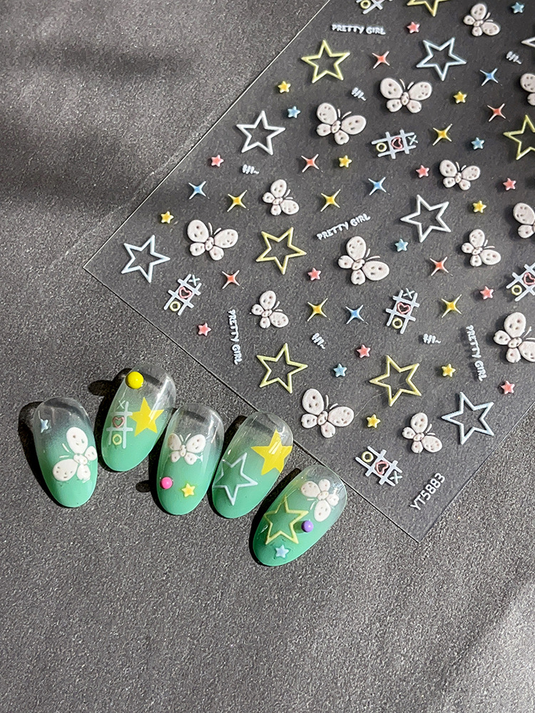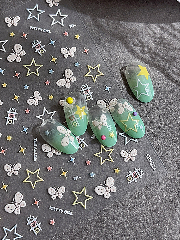 YITU 개미 그림 양각 나비 스타 네일 아트 스티커 간단한 귀여운 달콤한 인터넷 연예인 장식 스티커 YT5883