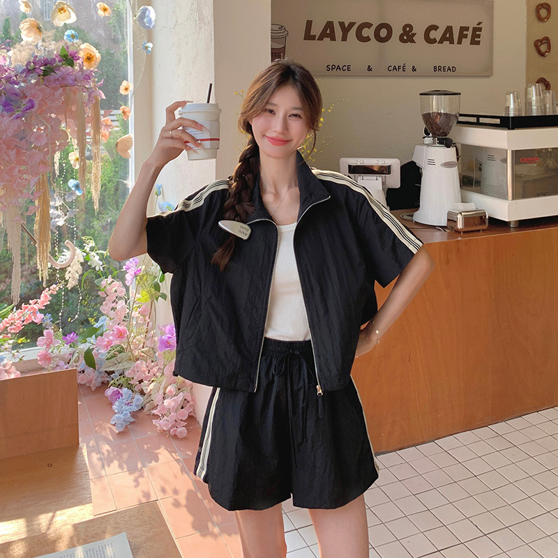리얼 샷 캐주얼 스포츠 세트 2025 새로운 패션 느슨한 슬림 연령 감소 프라이드 스트리트 반바지 러닝 의류스토어 가기