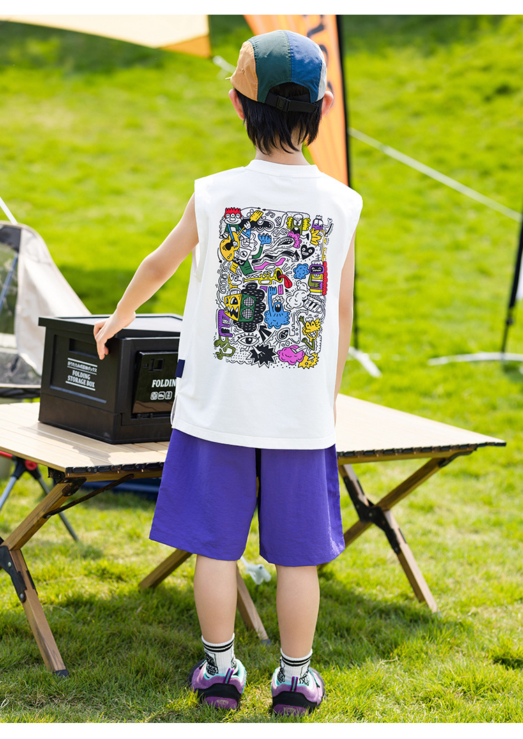 EK 아동복 여름 새로운 낙서 조끼 힙합 트렌디 탑 중 큰 아이