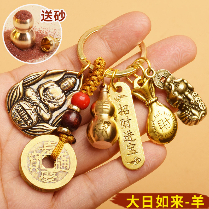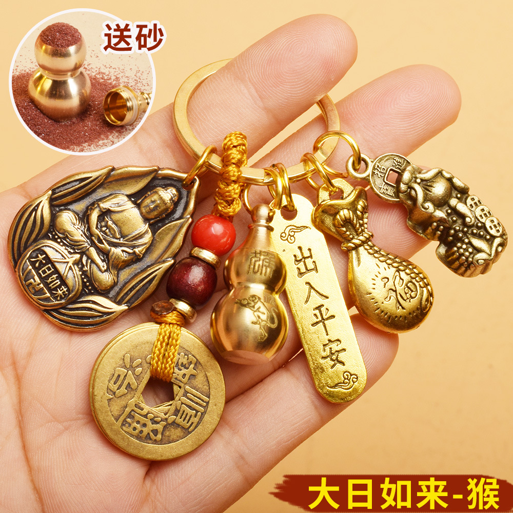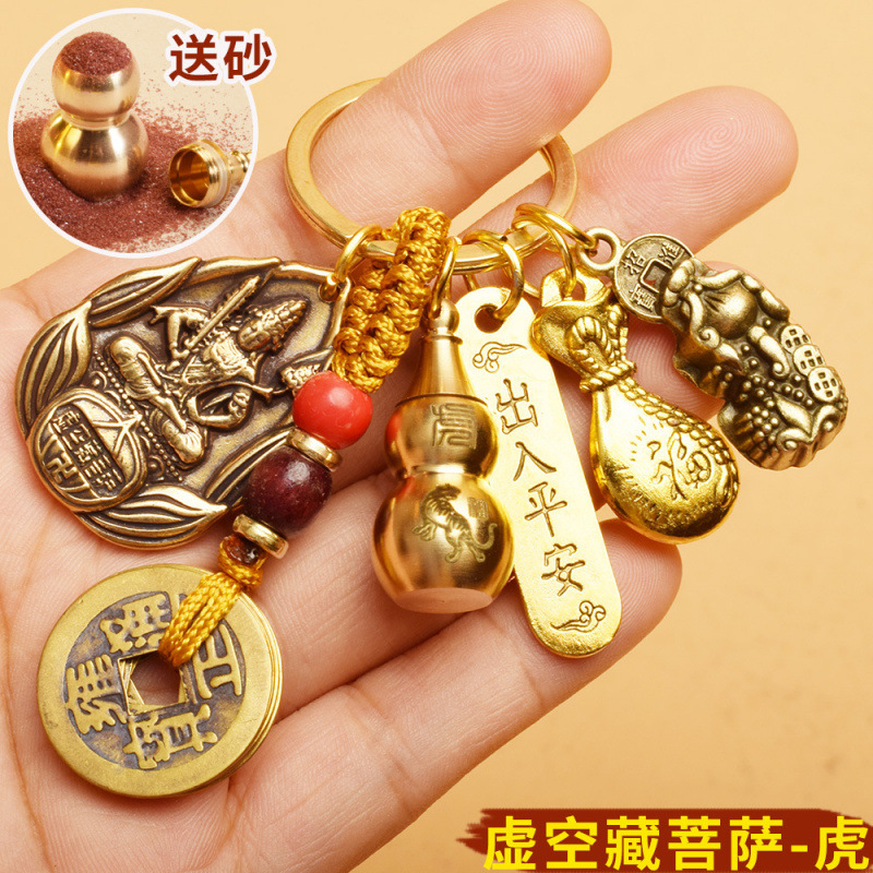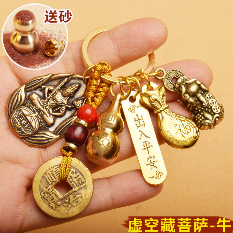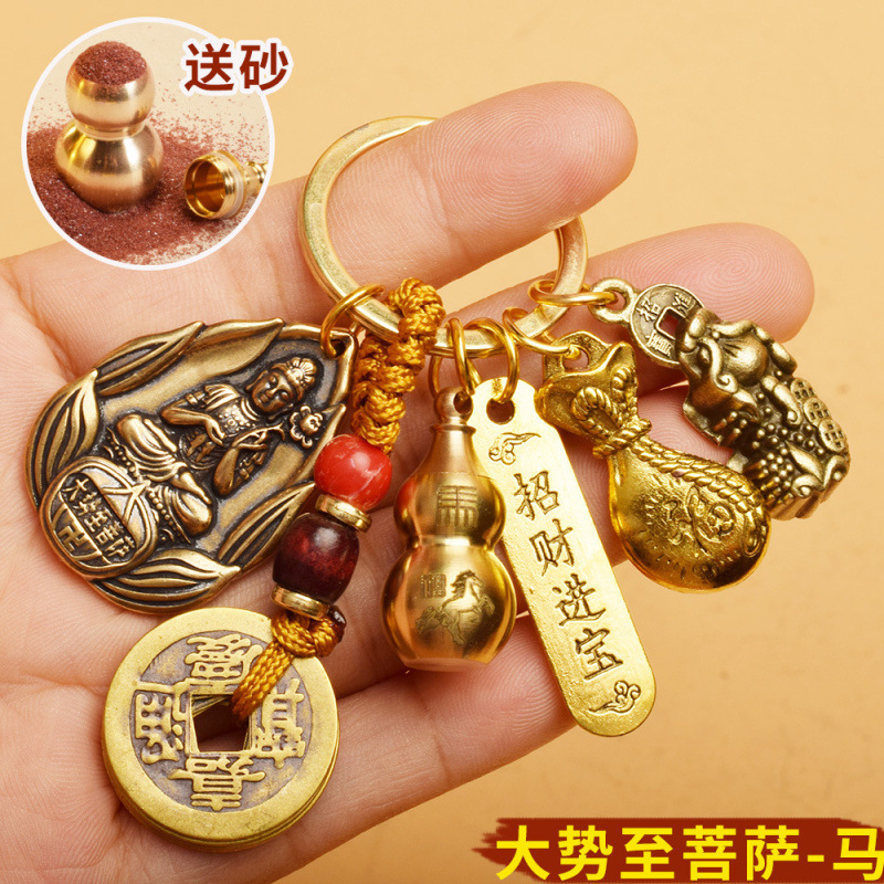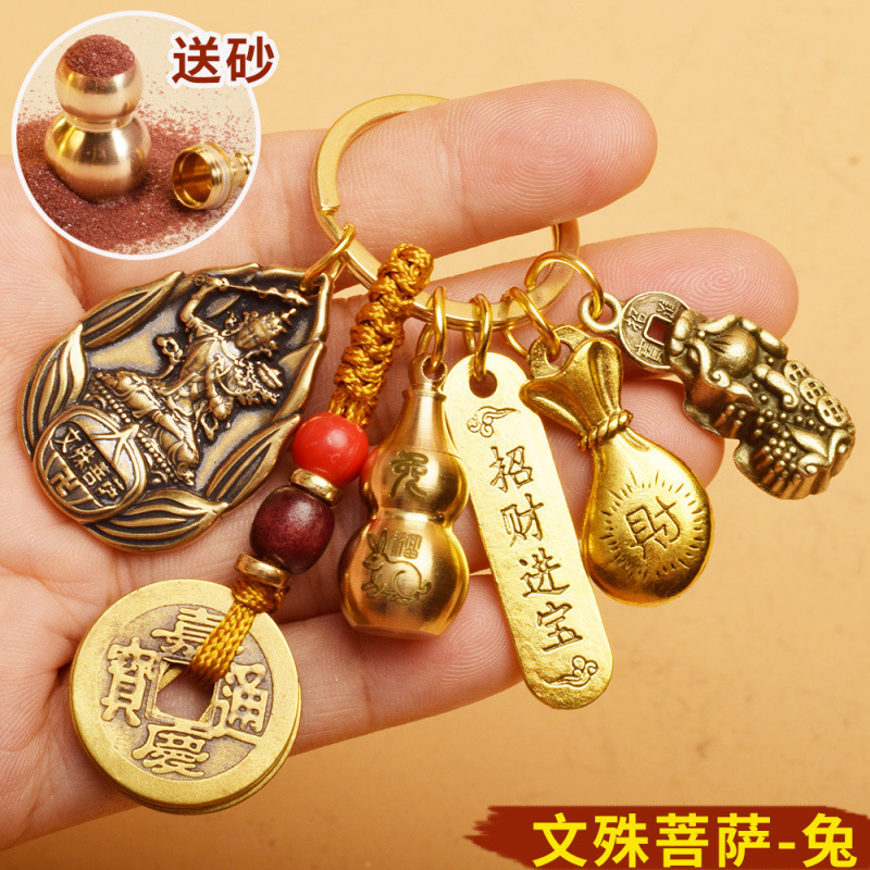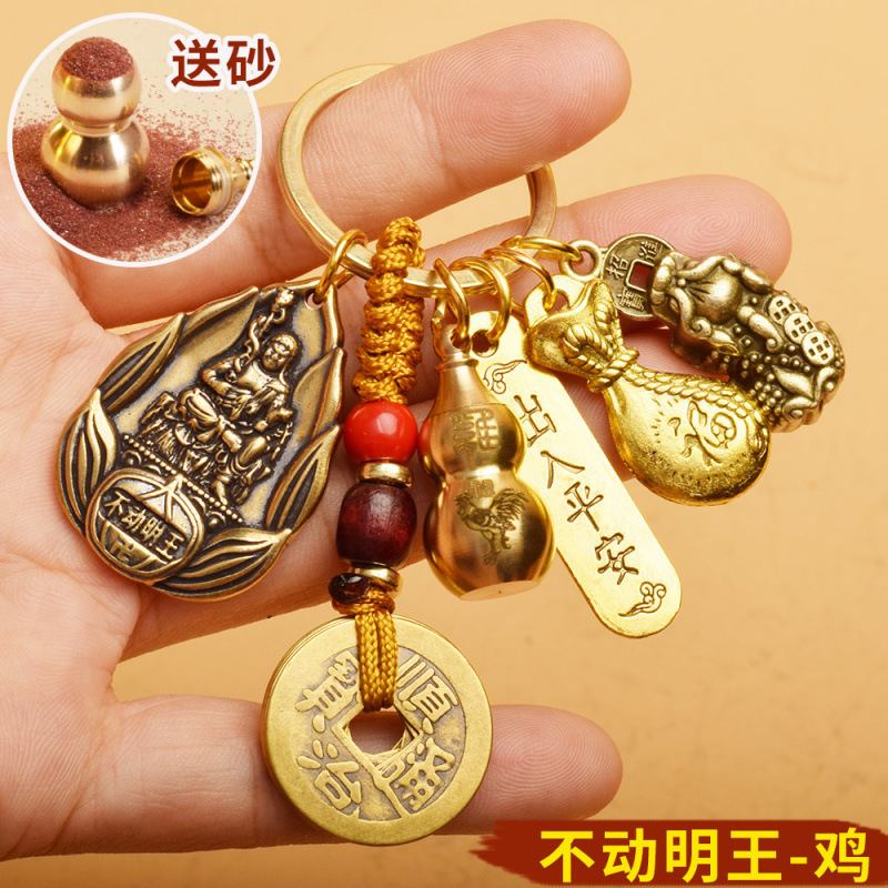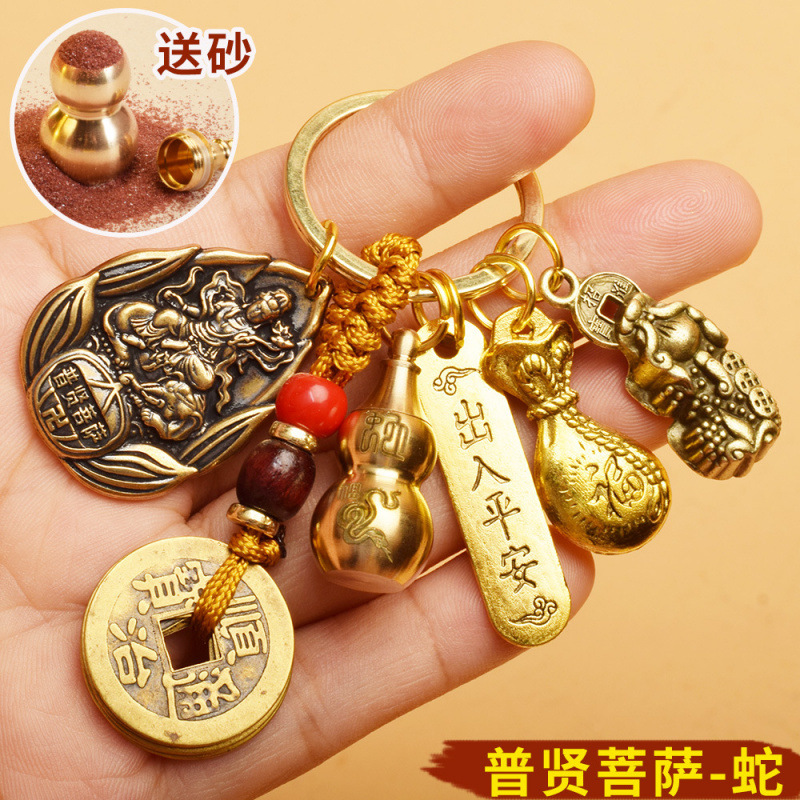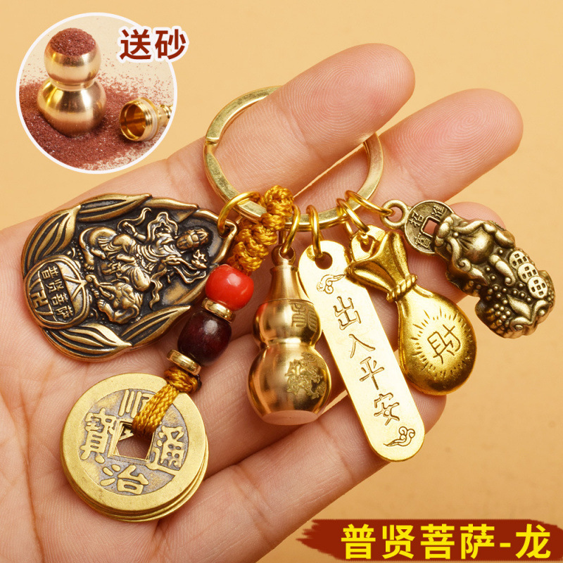 황동 키 체인 다섯 황제 돈 여덟 후원자 성자 벤 밍포 12 조디악 조롱박 머니 백 펜던트