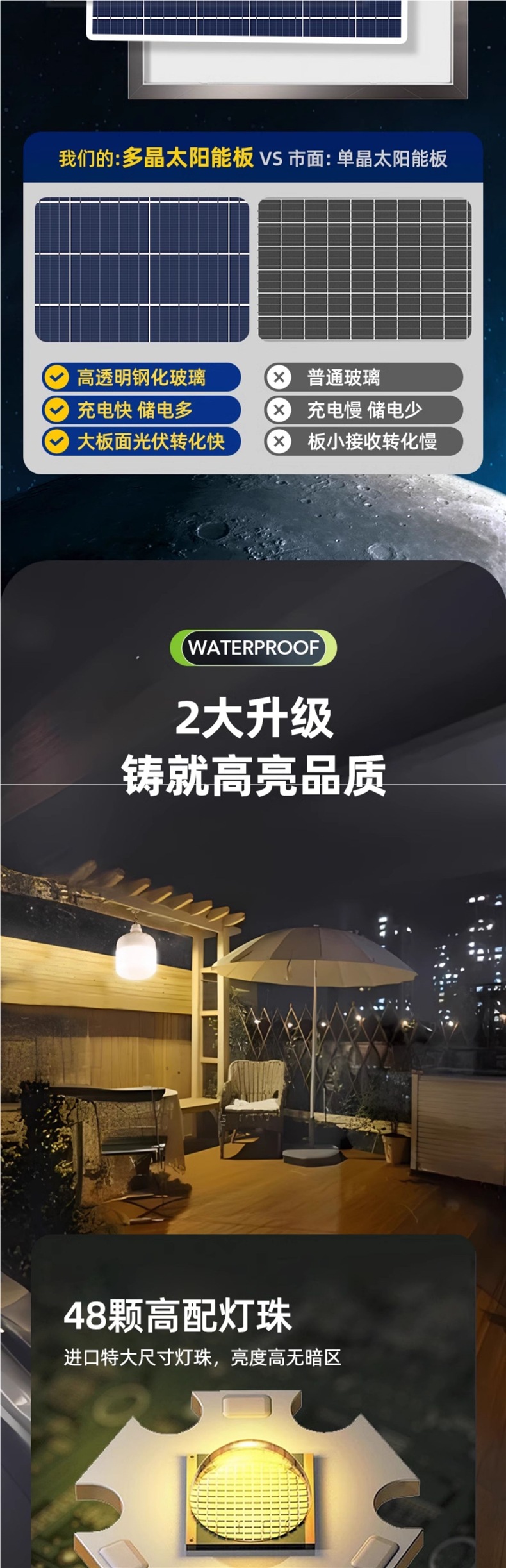 태양 정원 빛 야외 조명 가정용 가로등 슈퍼 밝은 조명 방수 충전 일대일 2 분할 유도 빛스토어 가기
