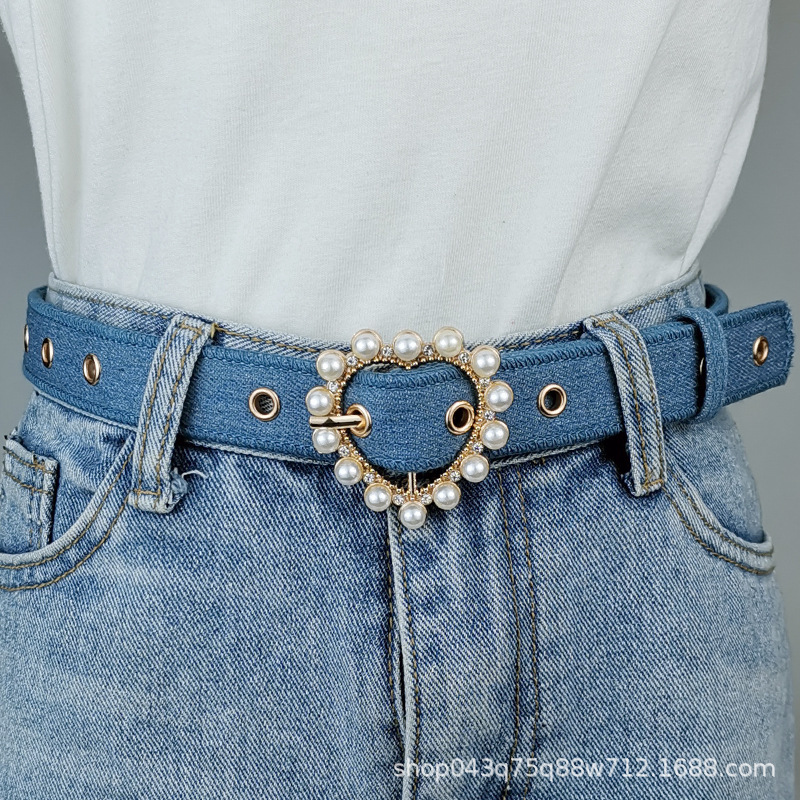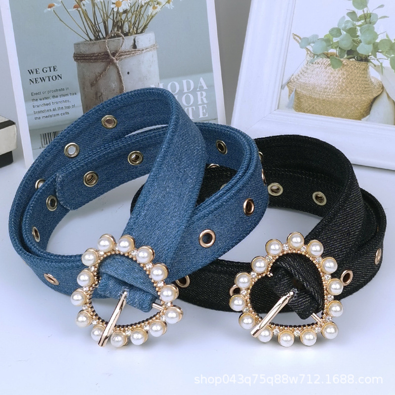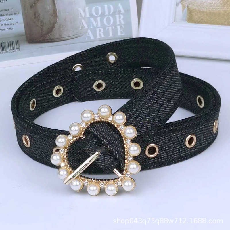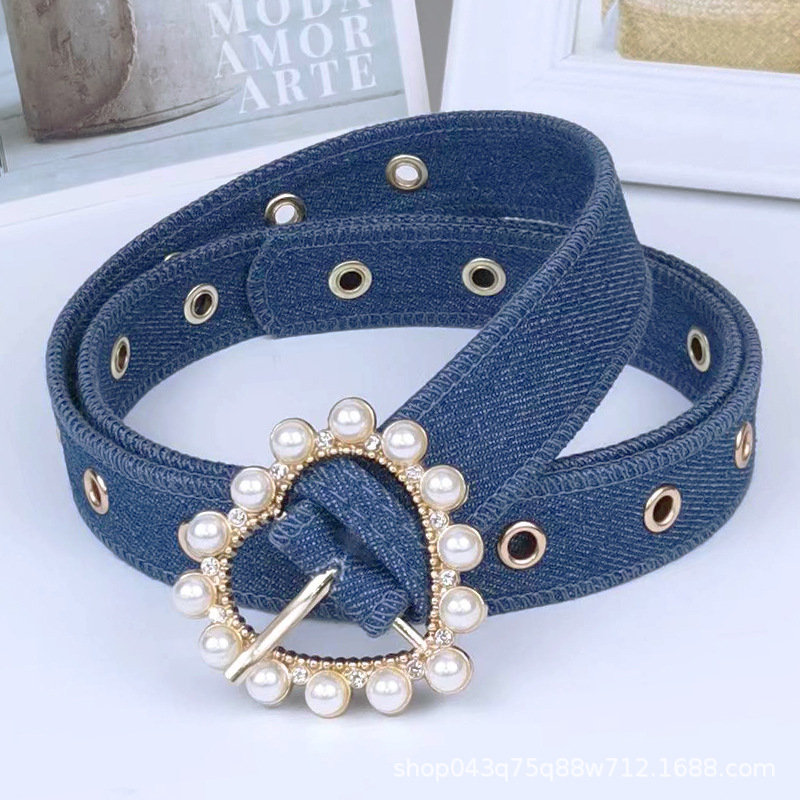 2025 패셔너블한 데님 펀치프리 캔버스 스타일 하트 버튼 다용도 심플 스타일 장식 한국식 청바지 벨트스토어 가기