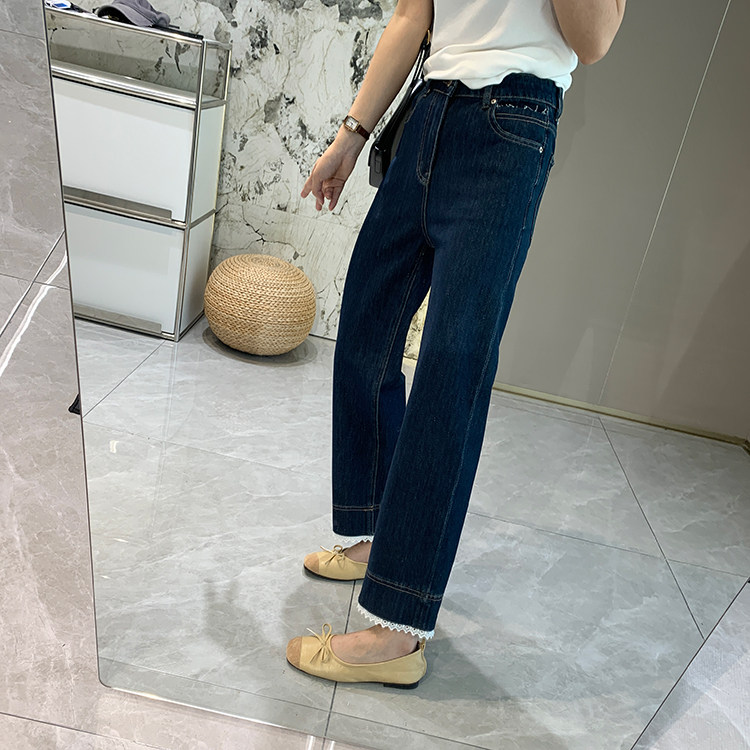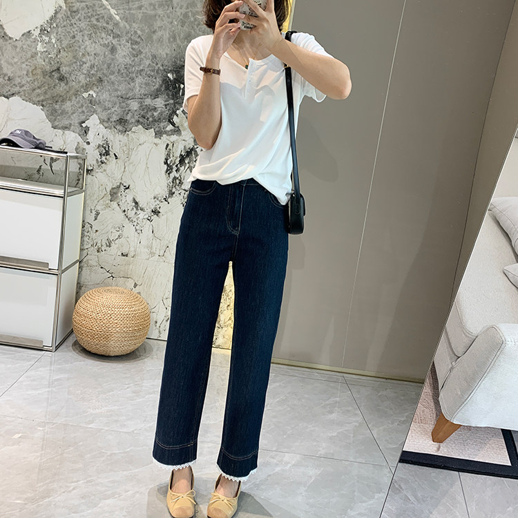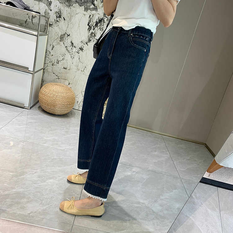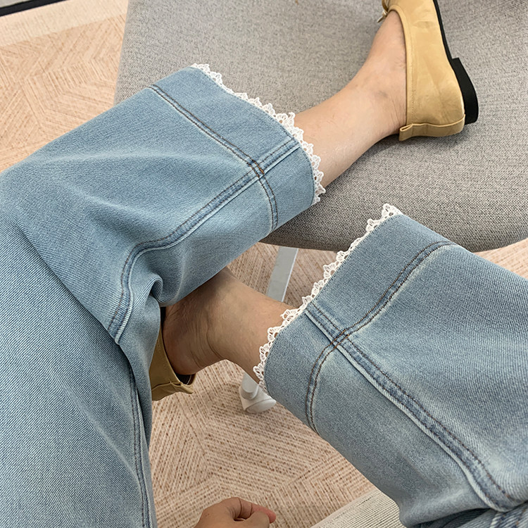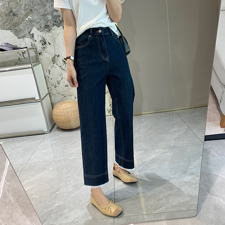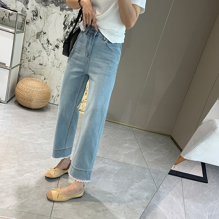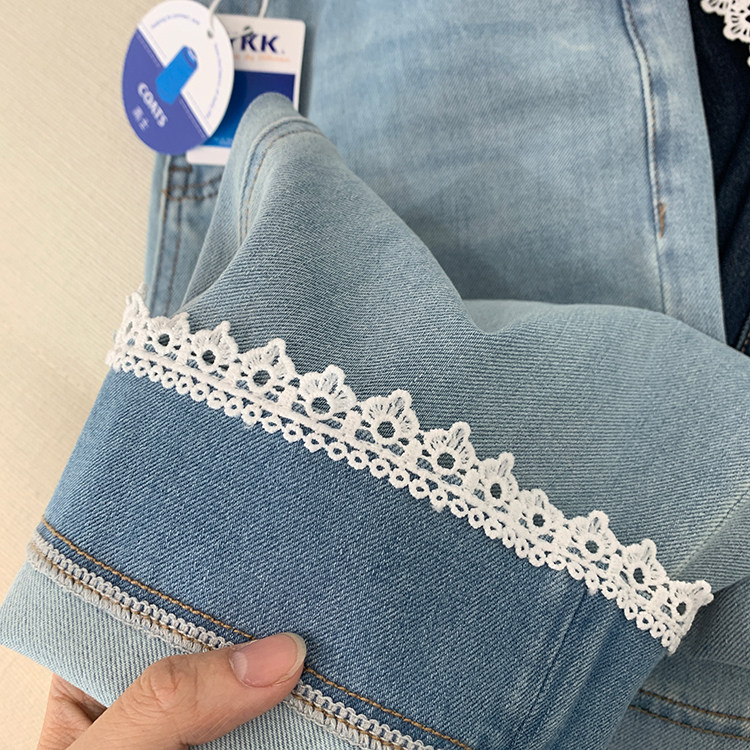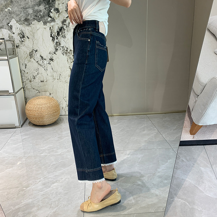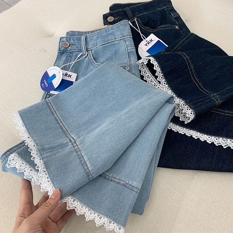 얇은 4 면 레이스 테두리 자른 와이드 레그 팬츠 여성용 여름 느슨한 높은 허리 슬리밍 쇼트 스트레이트 청바지스토어 가기