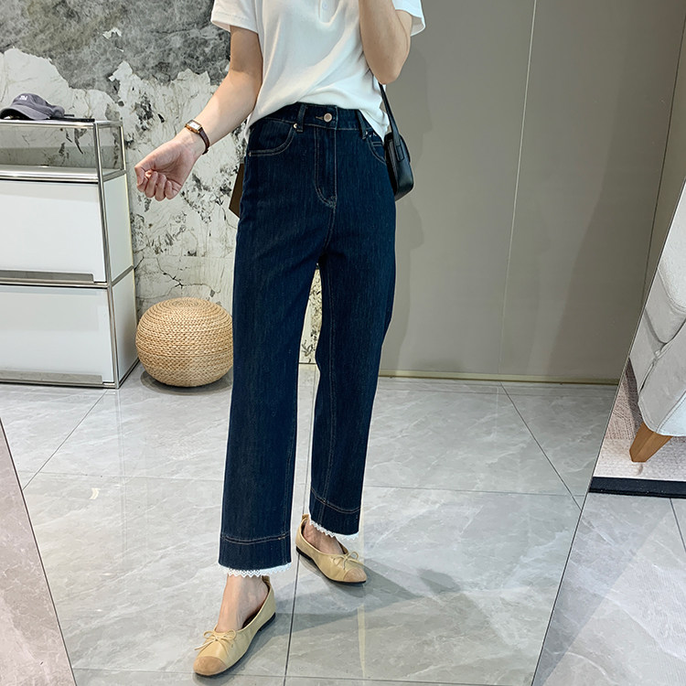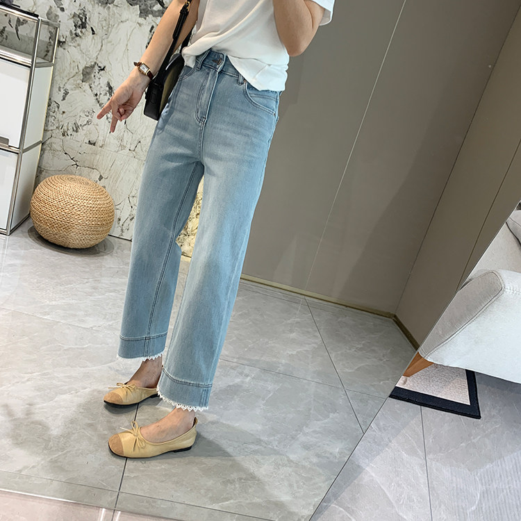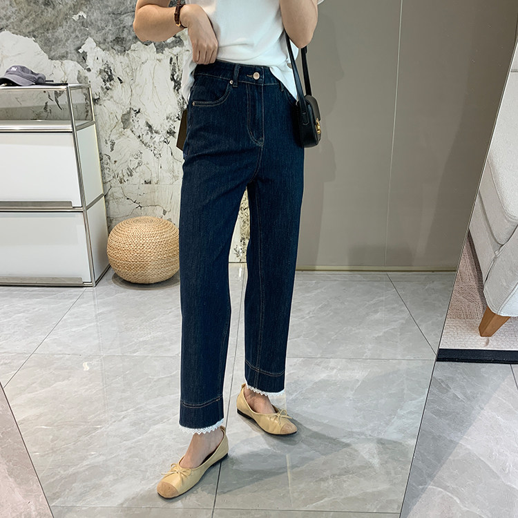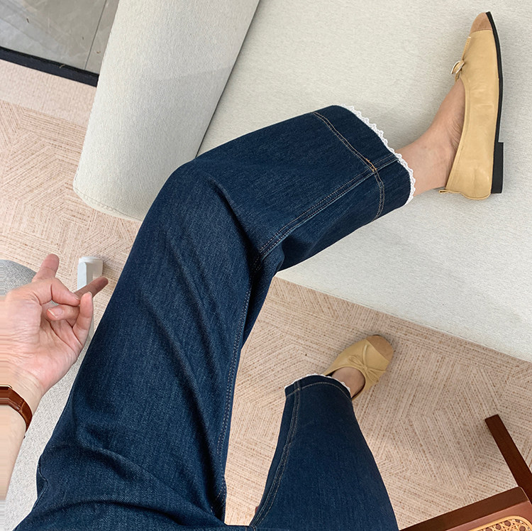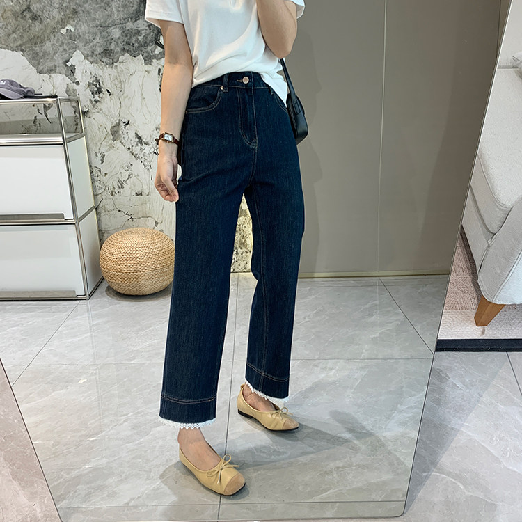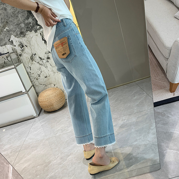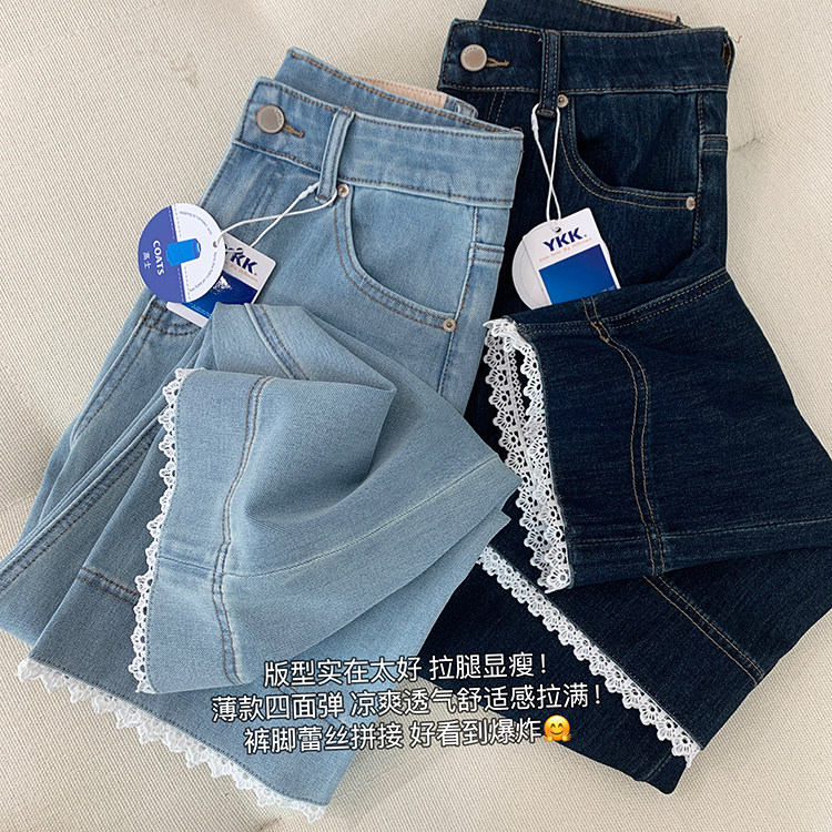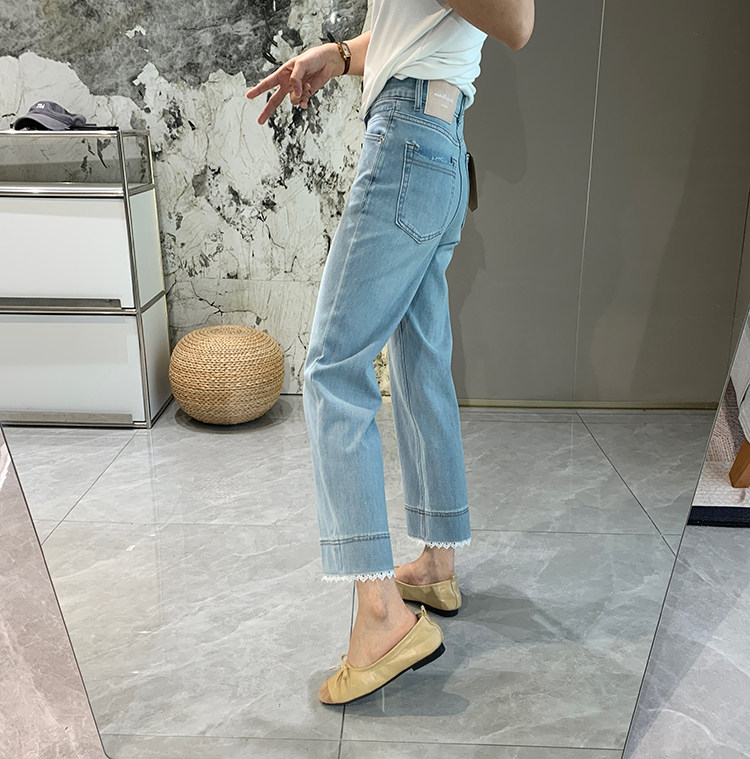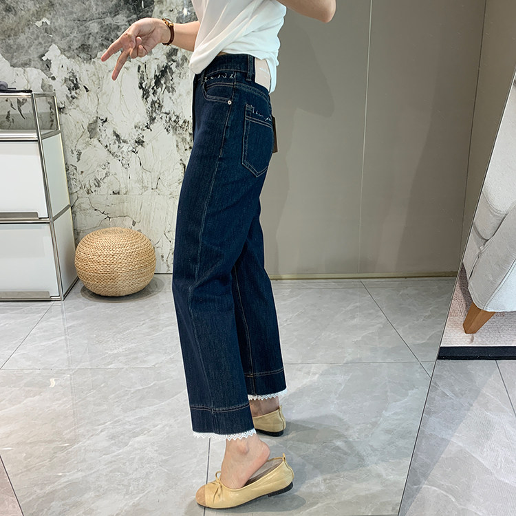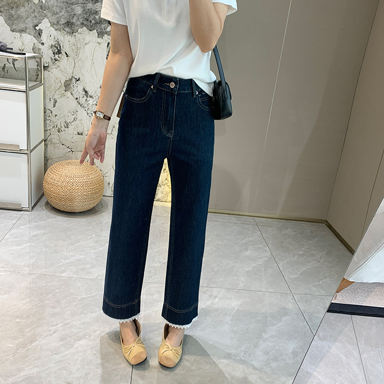 얇은 4 면 레이스 테두리 자른 와이드 레그 팬츠 여성용 여름 느슨한 높은 허리 슬리밍 쇼트 스트레이트 청바지스토어 가기