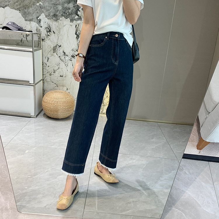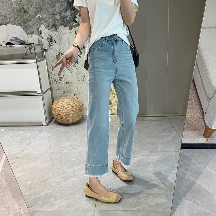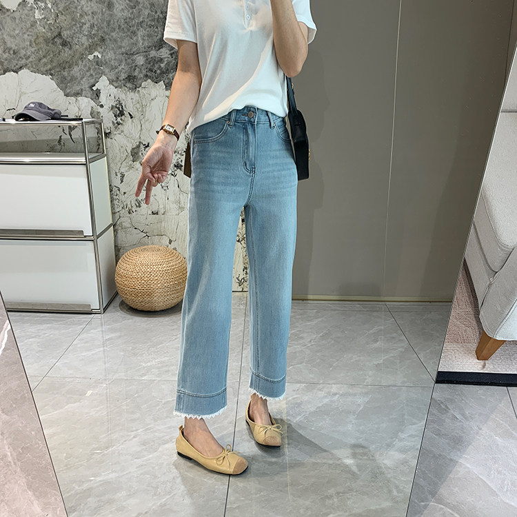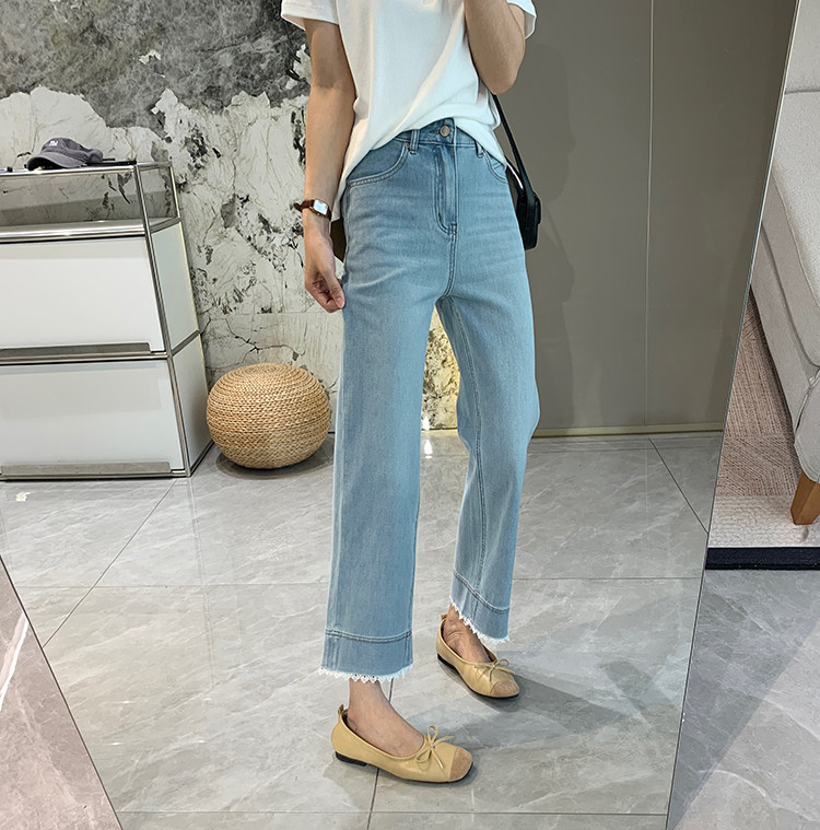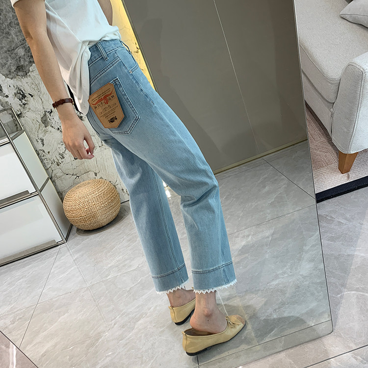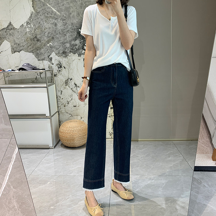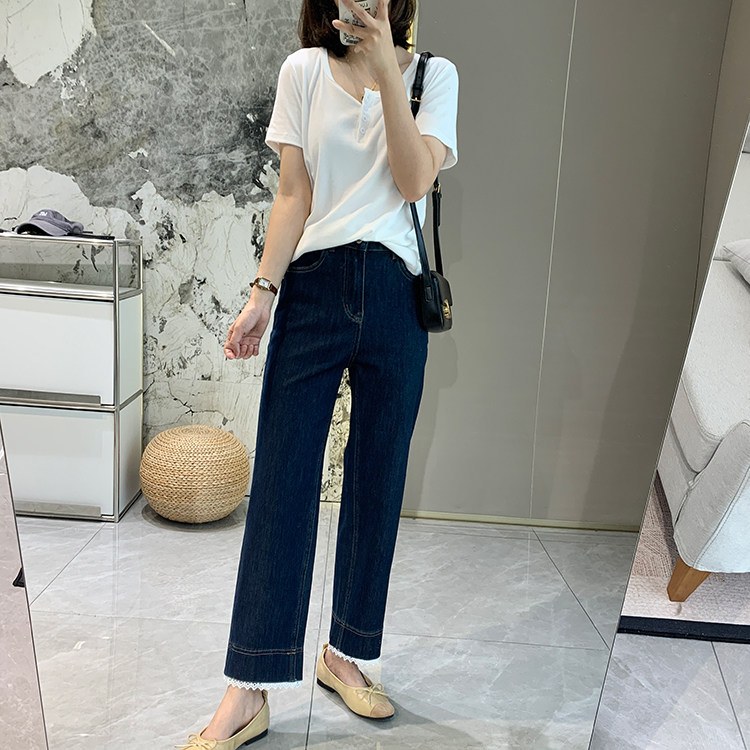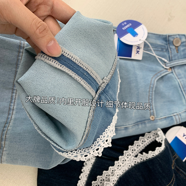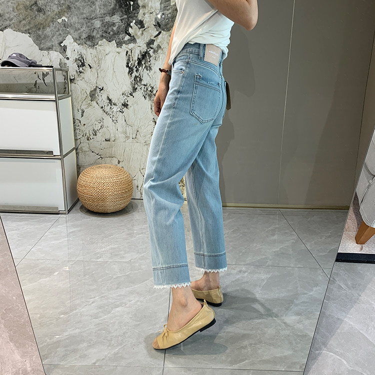 얇은 4 면 레이스 테두리 자른 와이드 레그 팬츠 여성용 여름 느슨한 높은 허리 슬리밍 쇼트 스트레이트 청바지스토어 가기