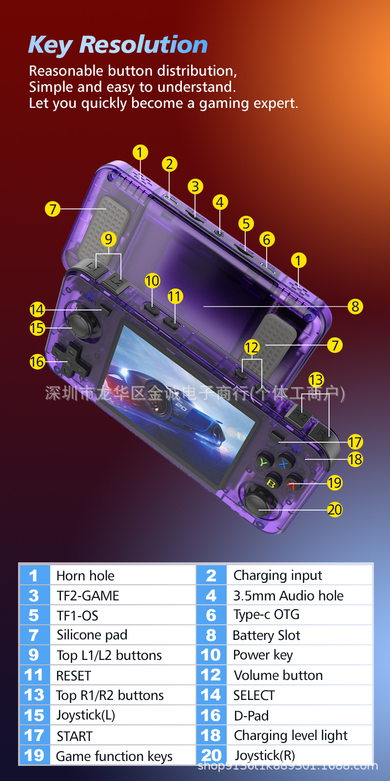 本公司产品不带任何游戏内容的内存卡,只销售游戏设备,购买前请知悉,至于游戏内容请自行网络查找。开源系统有ARKOS和其他开源系统等均支持。同时支持客户系统定制服务。