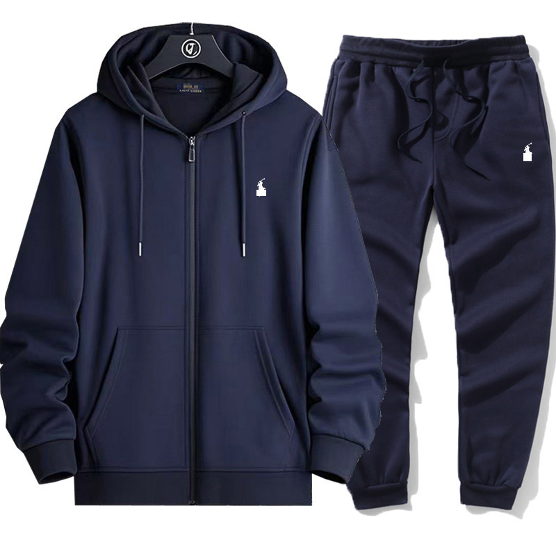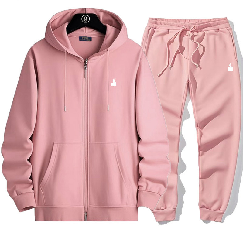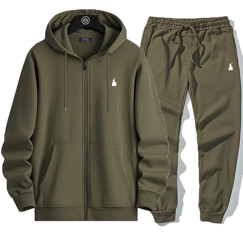 RL 자수 포니 카디건 스타일 플러스 벨벳 정장 스웨트 남성과 여성 봄 후드 자켓 + 바지 정장 캐주얼