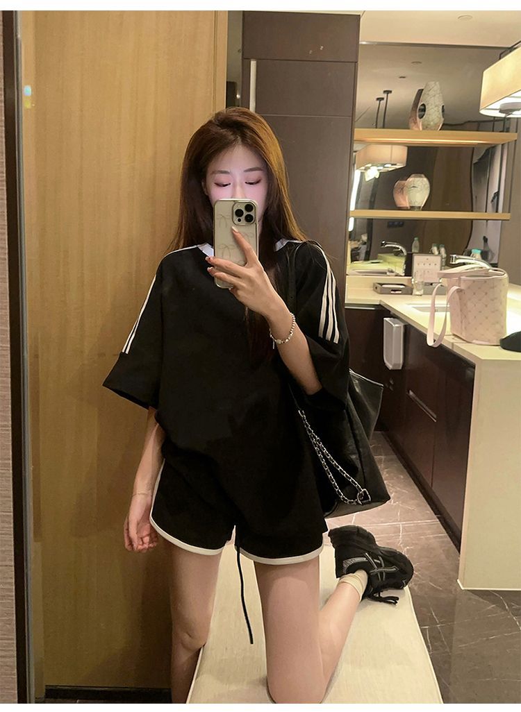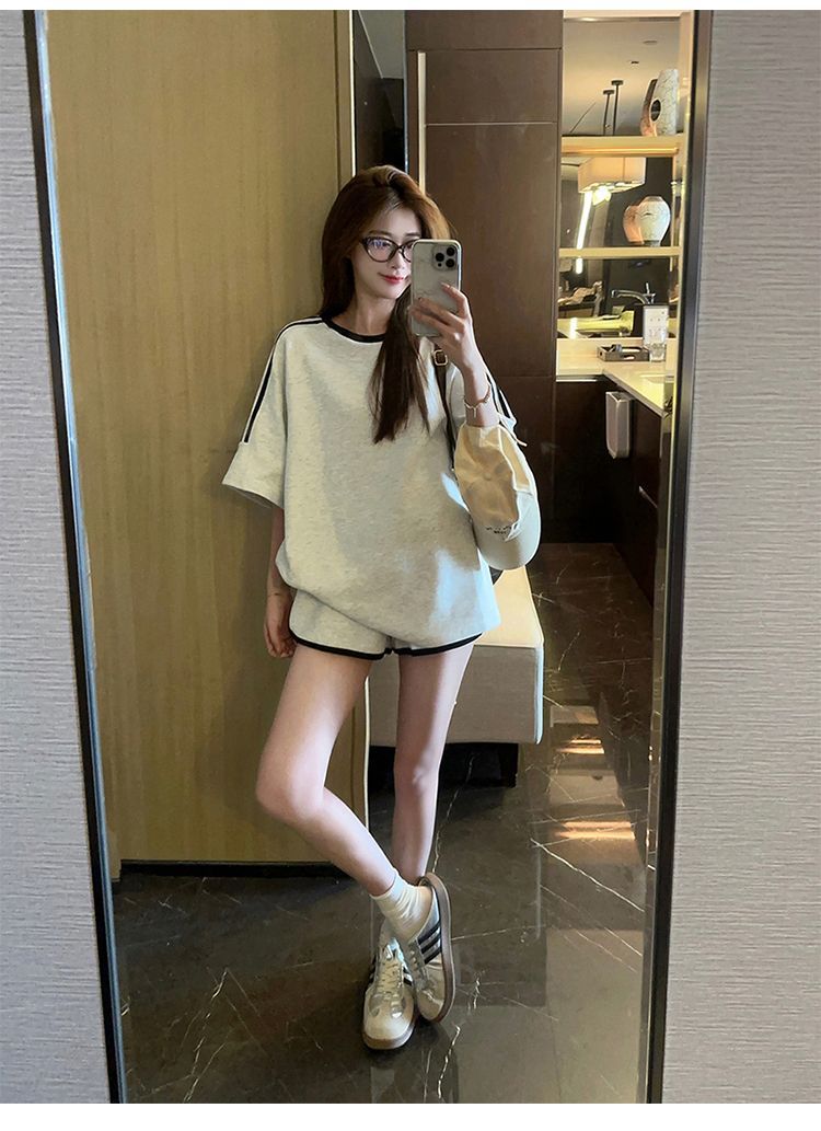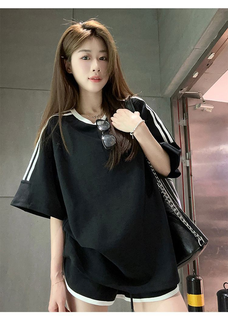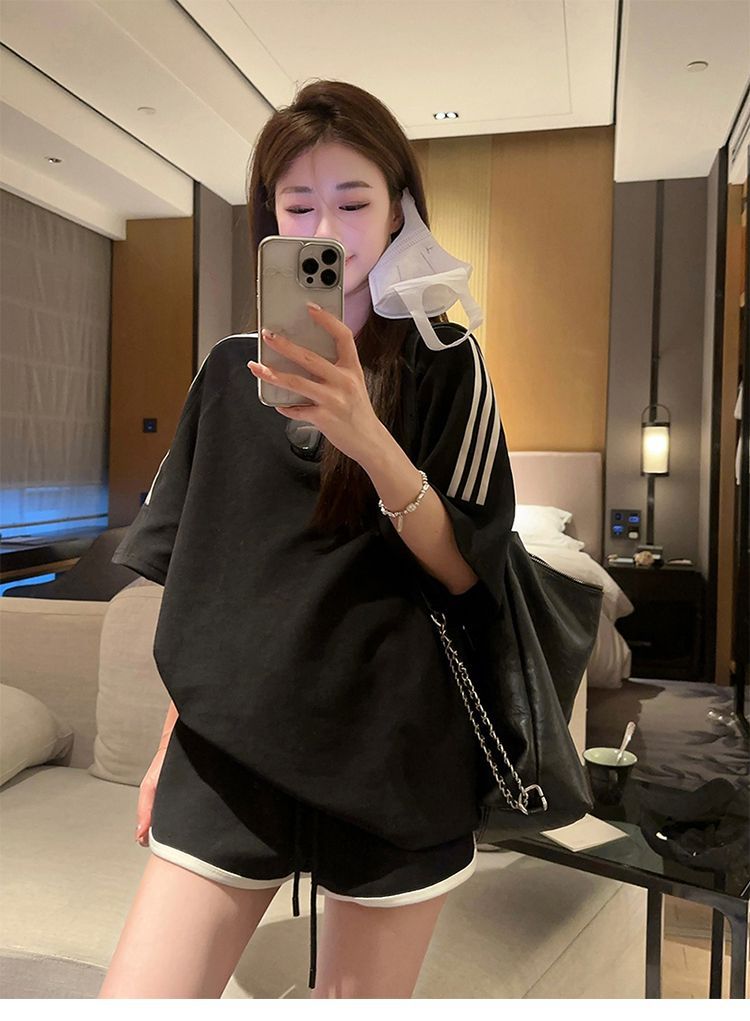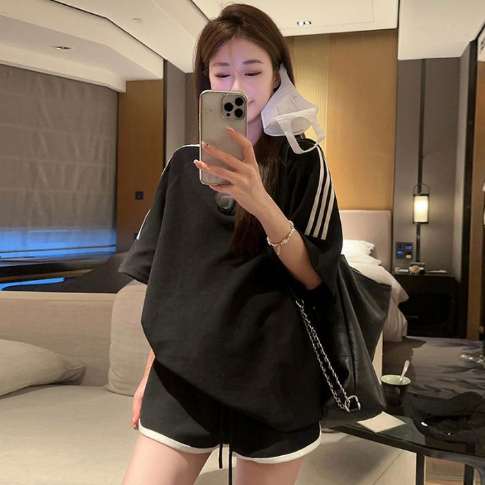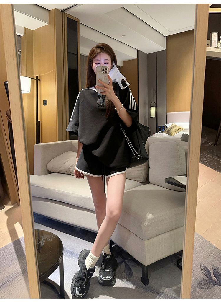 여름 운동복 정장 여성 트렌디 학생 한국 스타일 느슨한 패션 느슨한 반팔 반바지 캐주얼 투피스 세트스토어 가기
