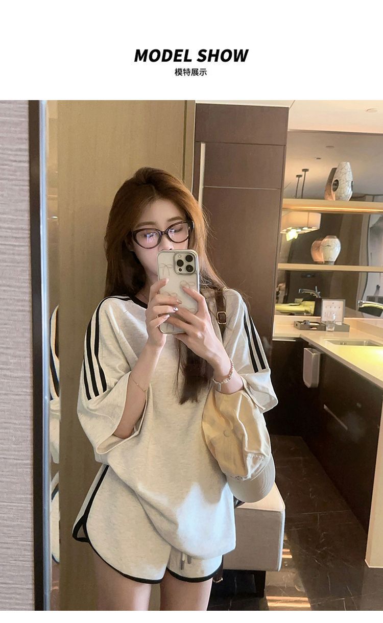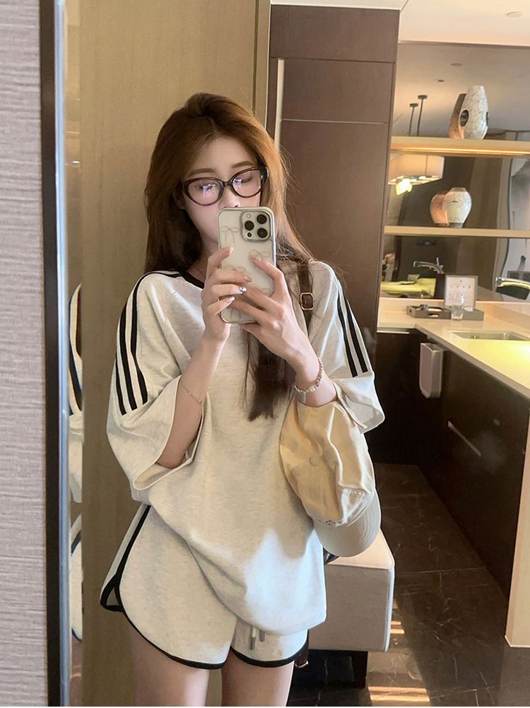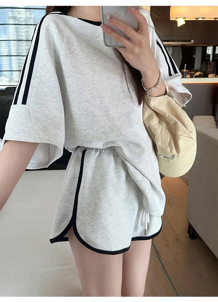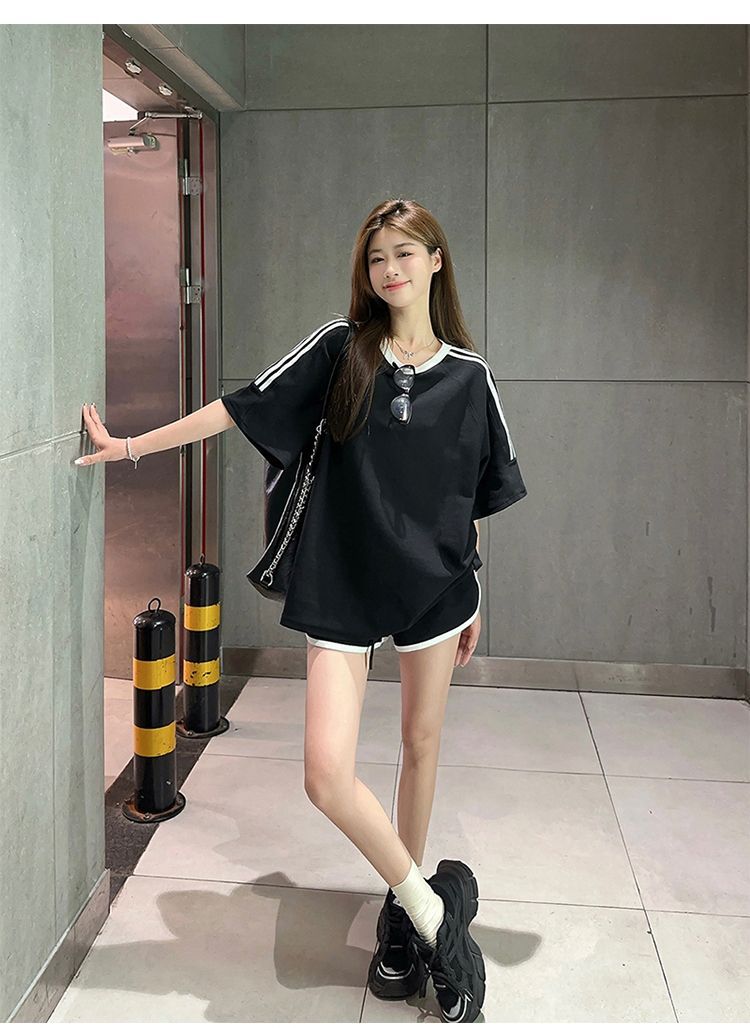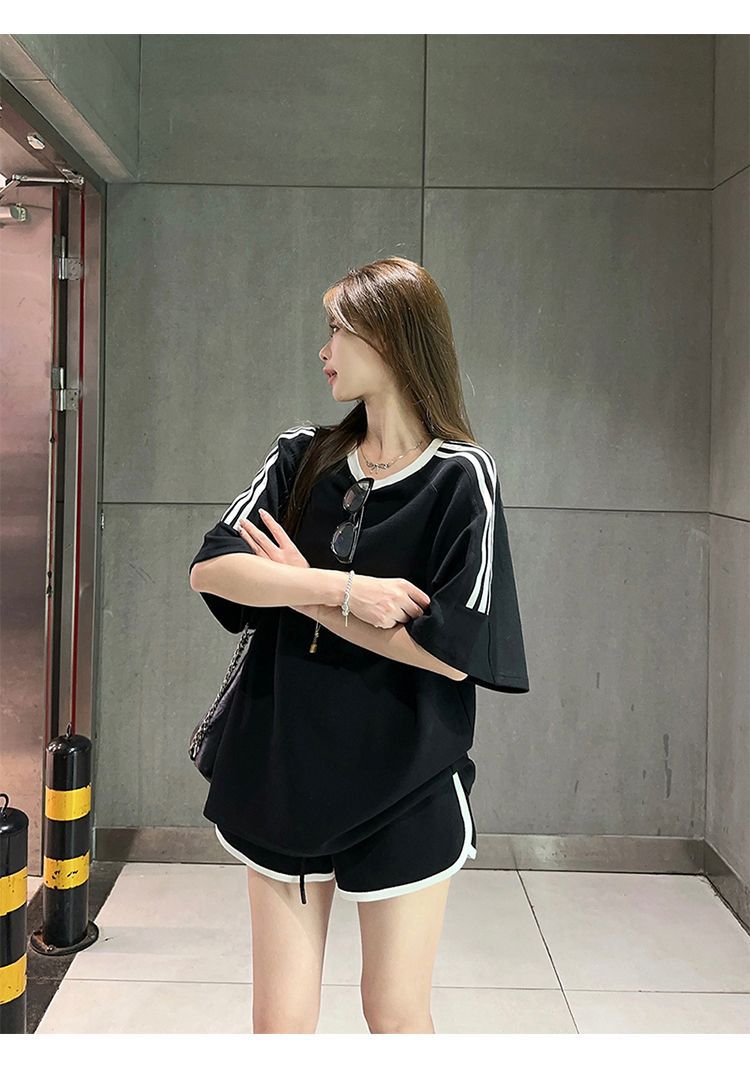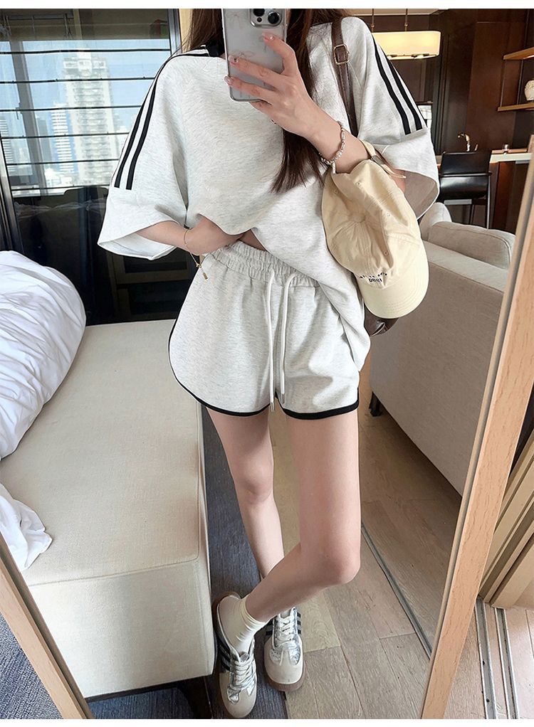 여름 운동복 정장 여성 트렌디 학생 한국 스타일 느슨한 패션 느슨한 반팔 반바지 캐주얼 투피스 세트스토어 가기
