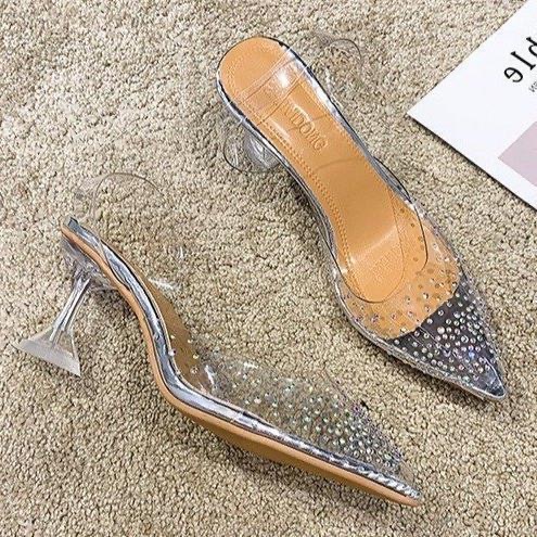크리스탈 투명 샌들 여성 요정 스타일 Baotou 2025 새로운 여름 패션 뾰족한 라인 석 하이힐 여성 스틸레토 힐스토어 가기