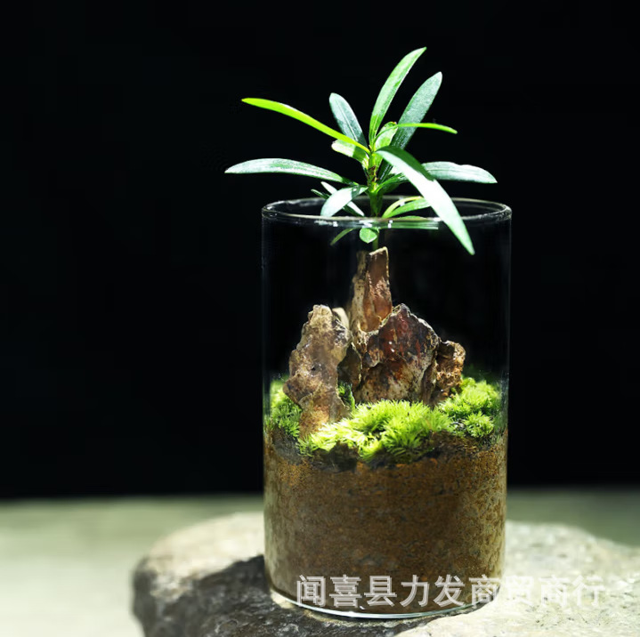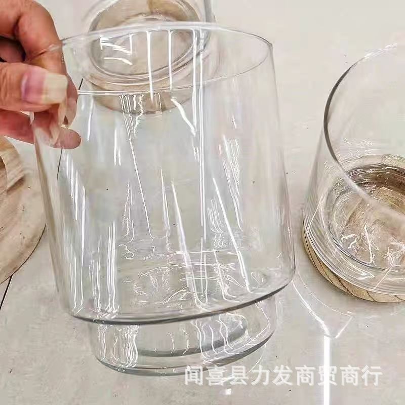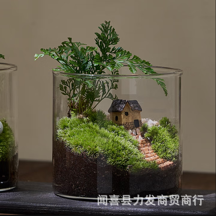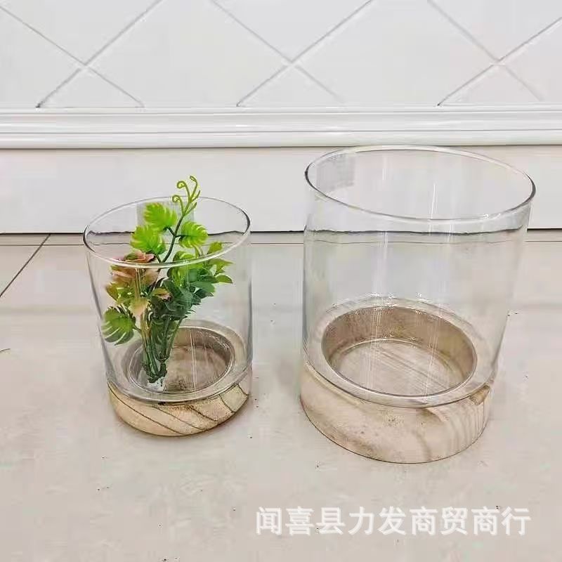 심플한 투명 유리 직선형 꽃병과 받침대가 있는 거실 화분, 수경재배 다육식물 장식품, 녹색 식물스토어 가기