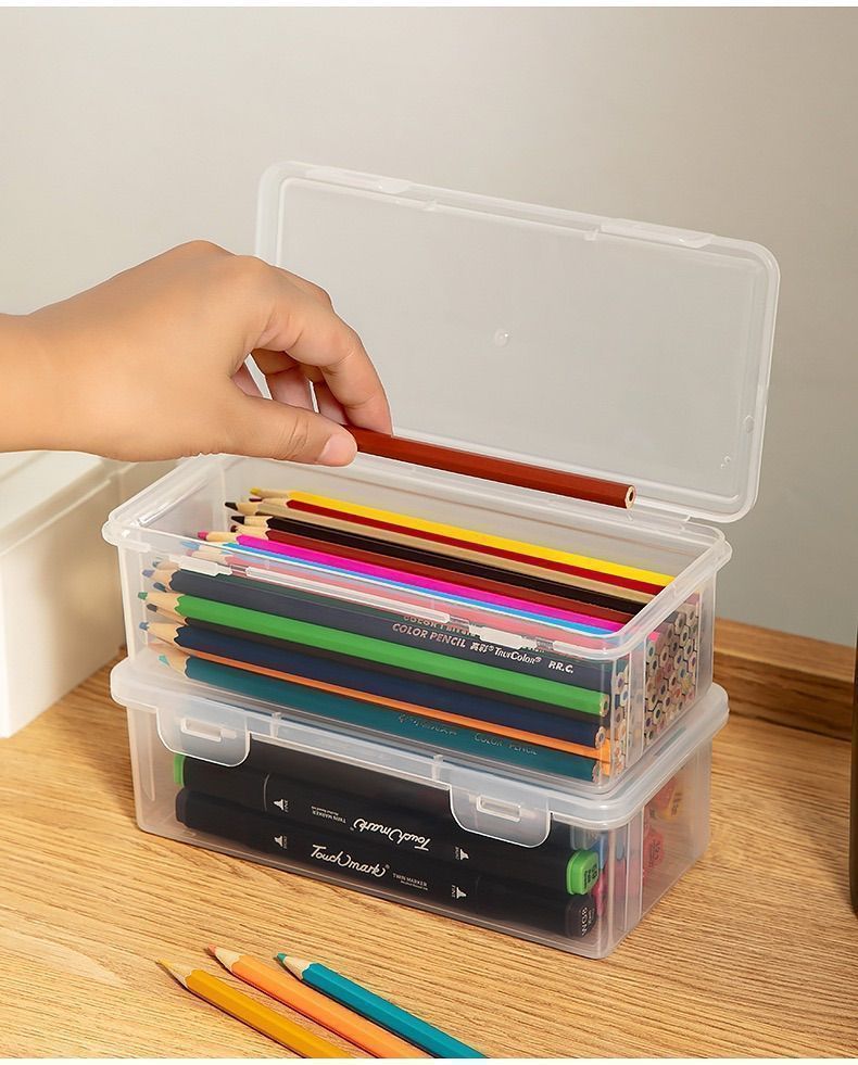 학생 연필 보관 상자 대용량 투명 문구 상자 보관 펜 홀더 컬러 리드 크레용 그림 스케치 펜 가방스토어 가기