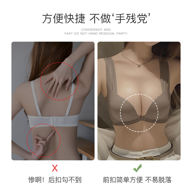 와이어가 없는 프론트 버튼 푸쉬업 브라, 섹시하고 아름다운 등 조절 가능한 여성용 속옷, 푸쉬업 심리스 브라 세트스토어 가기