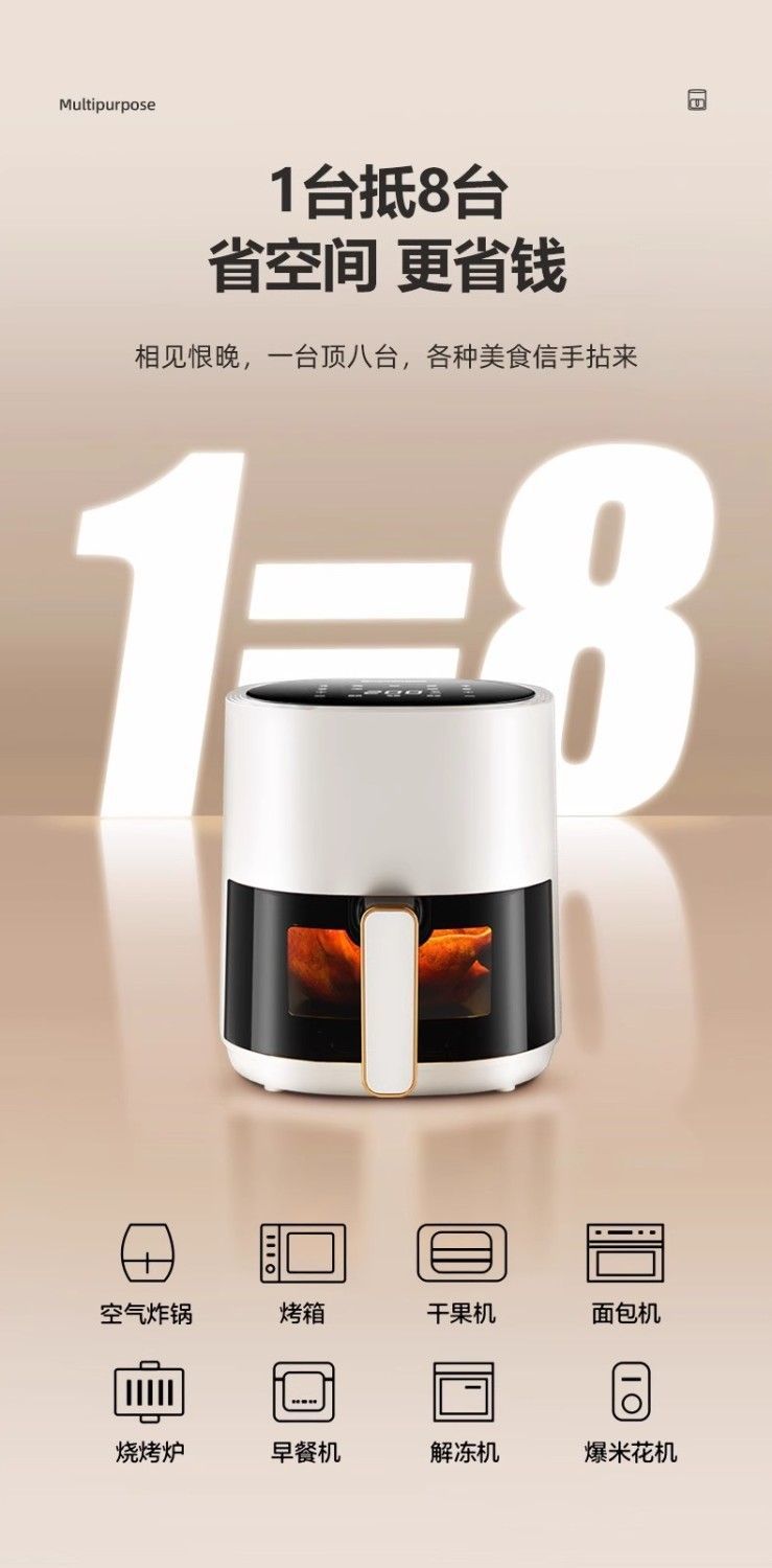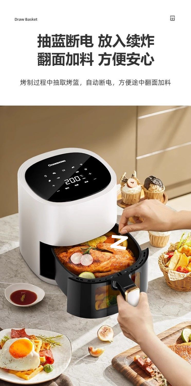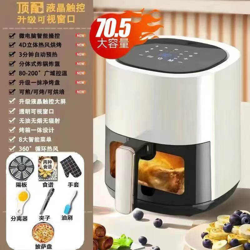 업그레이드된 플립프리 에어프라이어 새로운 가정용 대용량 다기능 시각적 완전 자동 스마트 전기 프라이