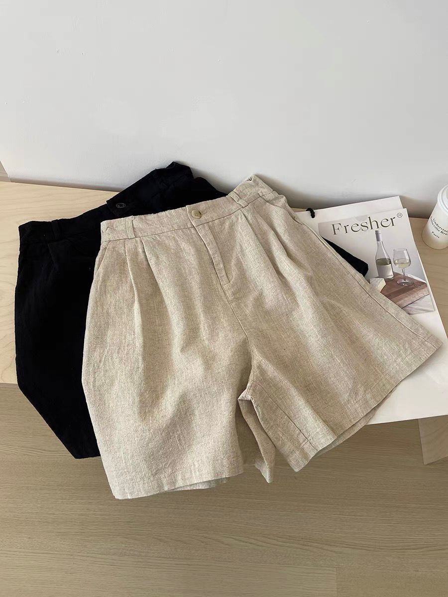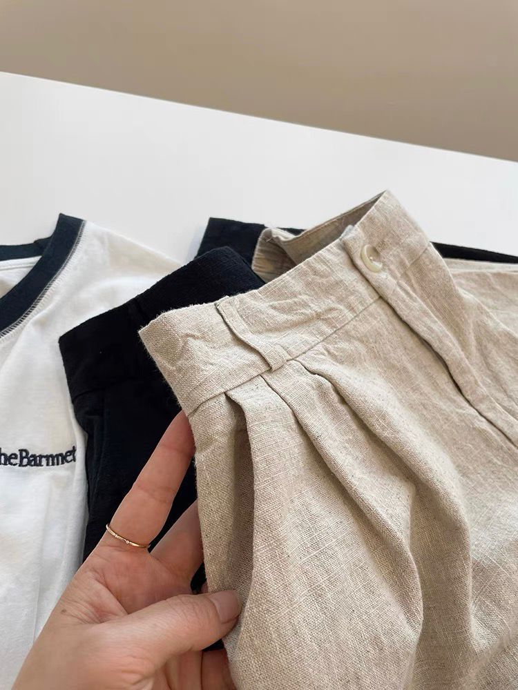 自留,拍照贼上镜!!复古时髦感通勤棉麻a字阔腿休闲中裤五分裤