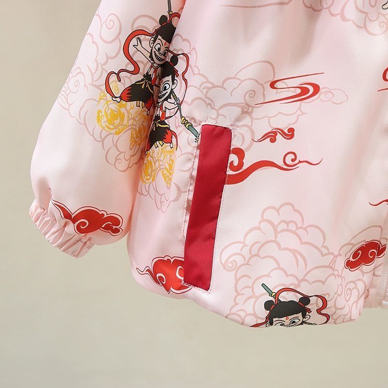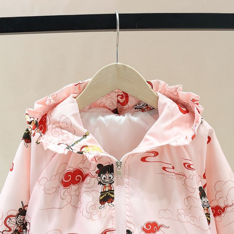 여자 봄, 가을 Nezha 재킷 2025 여자 아기 어린이 방풍 후드 야외 탑 봄 옷