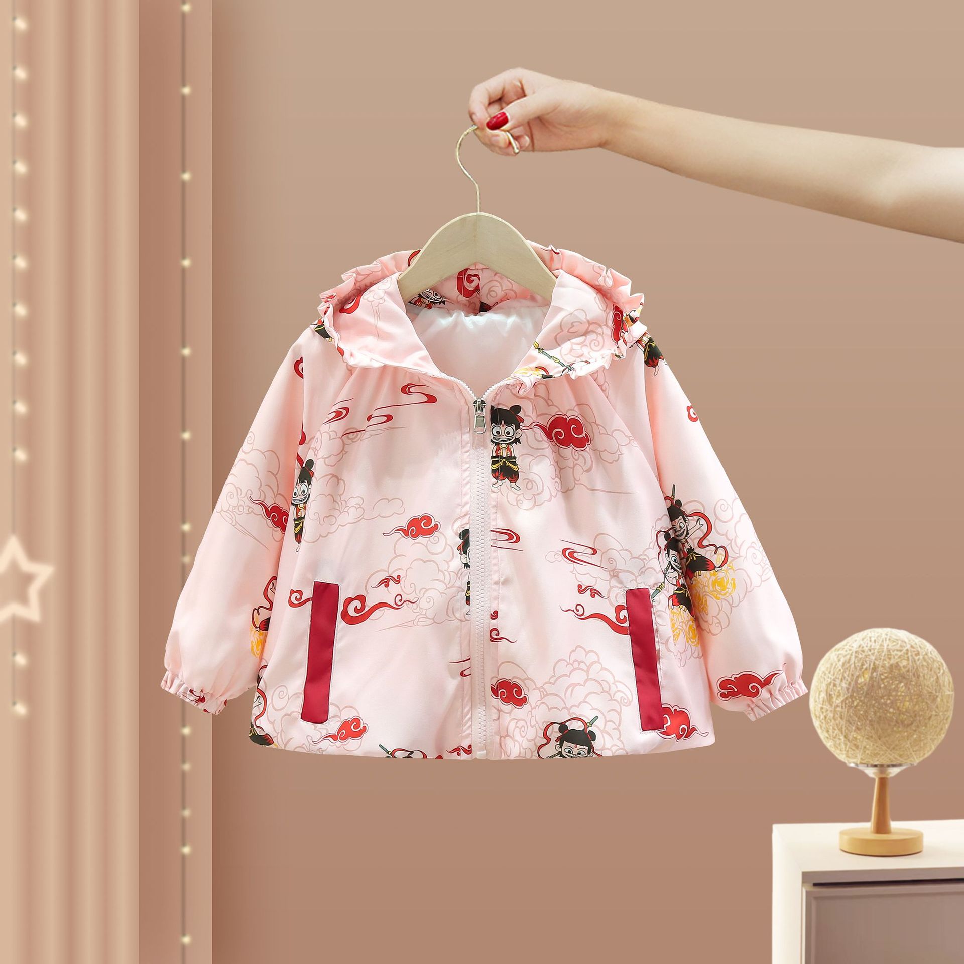 여자 봄, 가을 Nezha 재킷 2025 여자 아기 어린이 방풍 후드 야외 탑 봄 옷스토어 가기