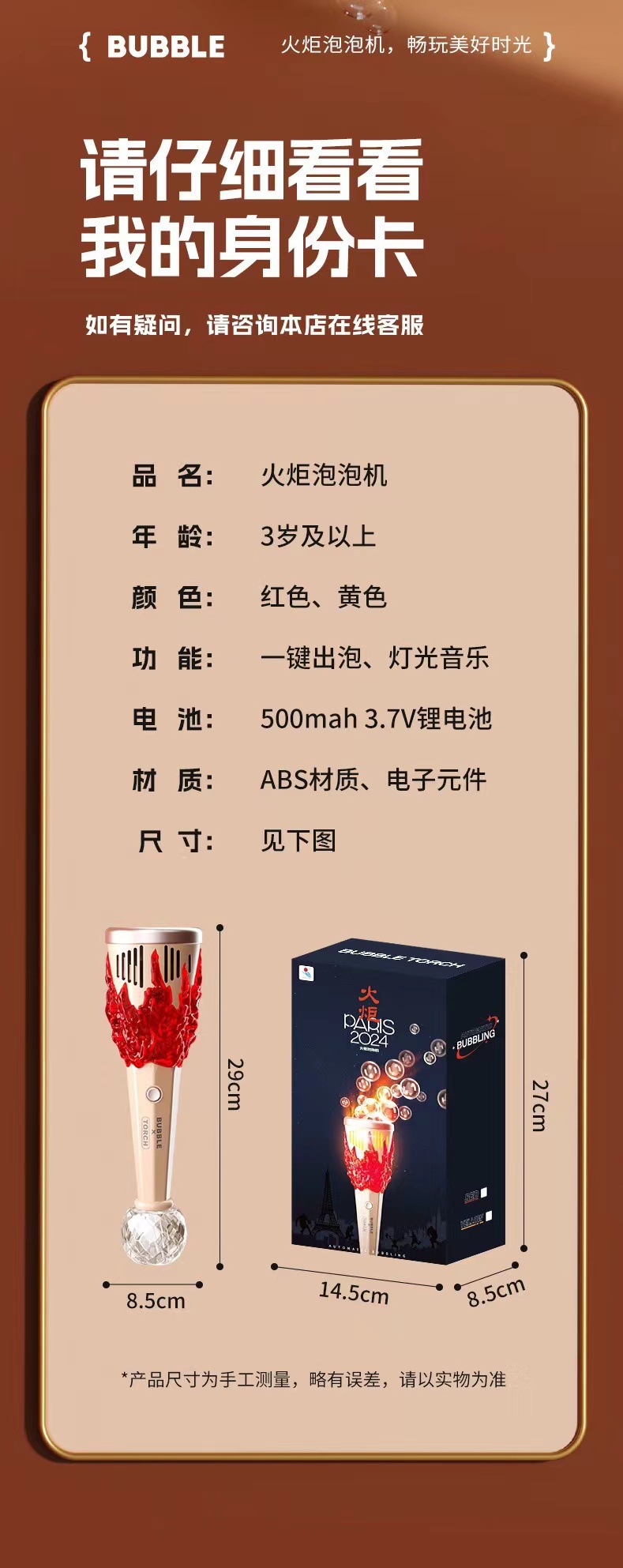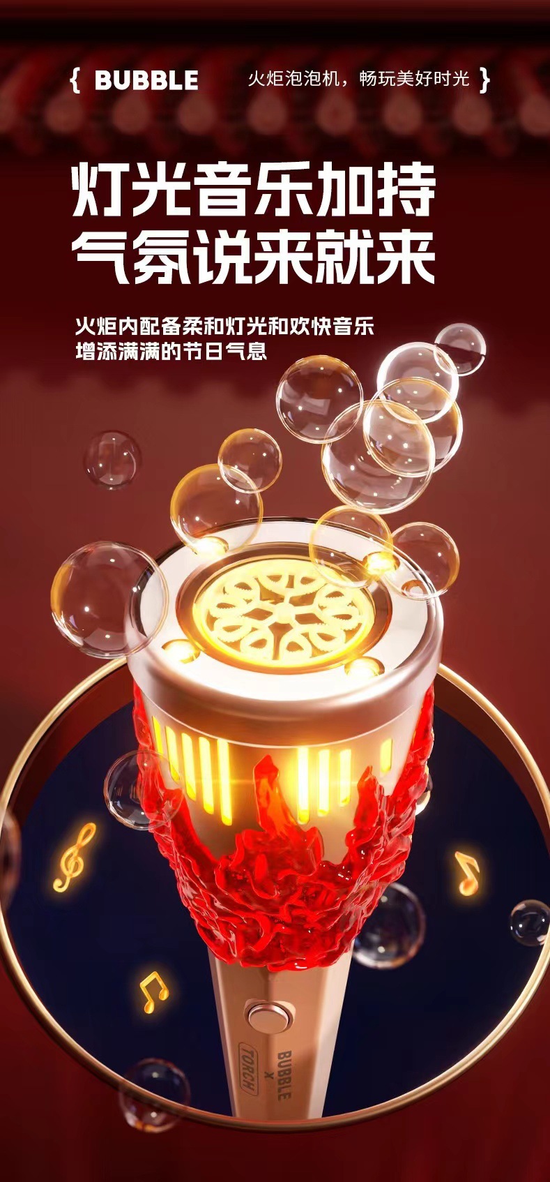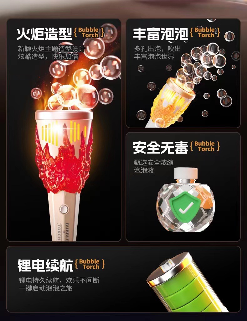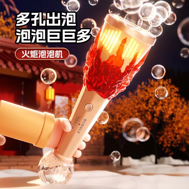 완전 자동 어린이의 새로운 전기 토치 버블 머신 다공성 버블 부는 다채로운 소리와 빛 휴대용 버블 지팡이 장난감스토어 가기