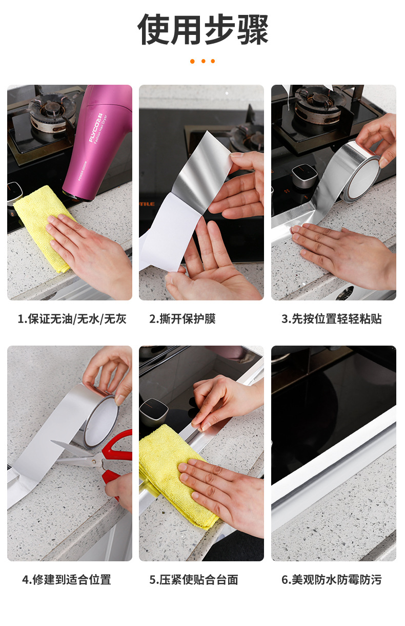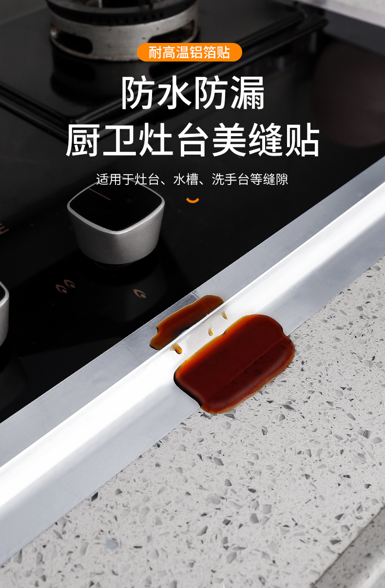 주방용 미세접착스티커, 방수, 곰팡이 방지, 기름 방지, 자체 접착식 스토브 스티커, 싱크대 사이의 틈새, 고온 방지 알루미늄 호일스토어 가기