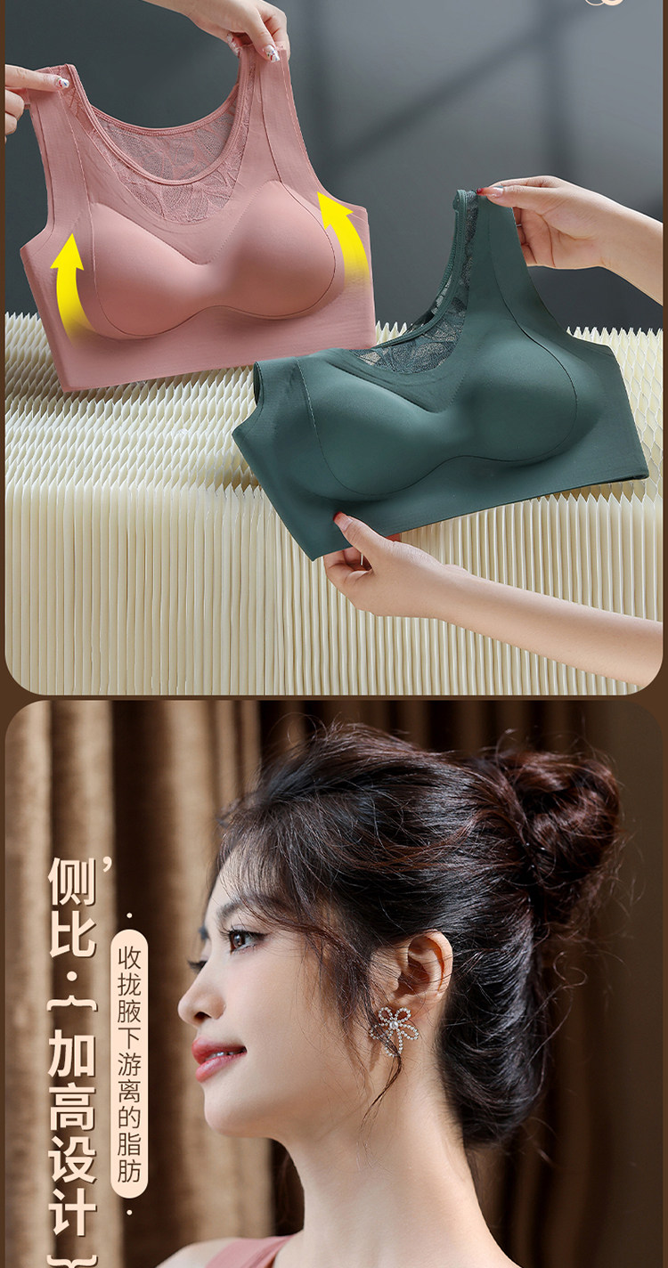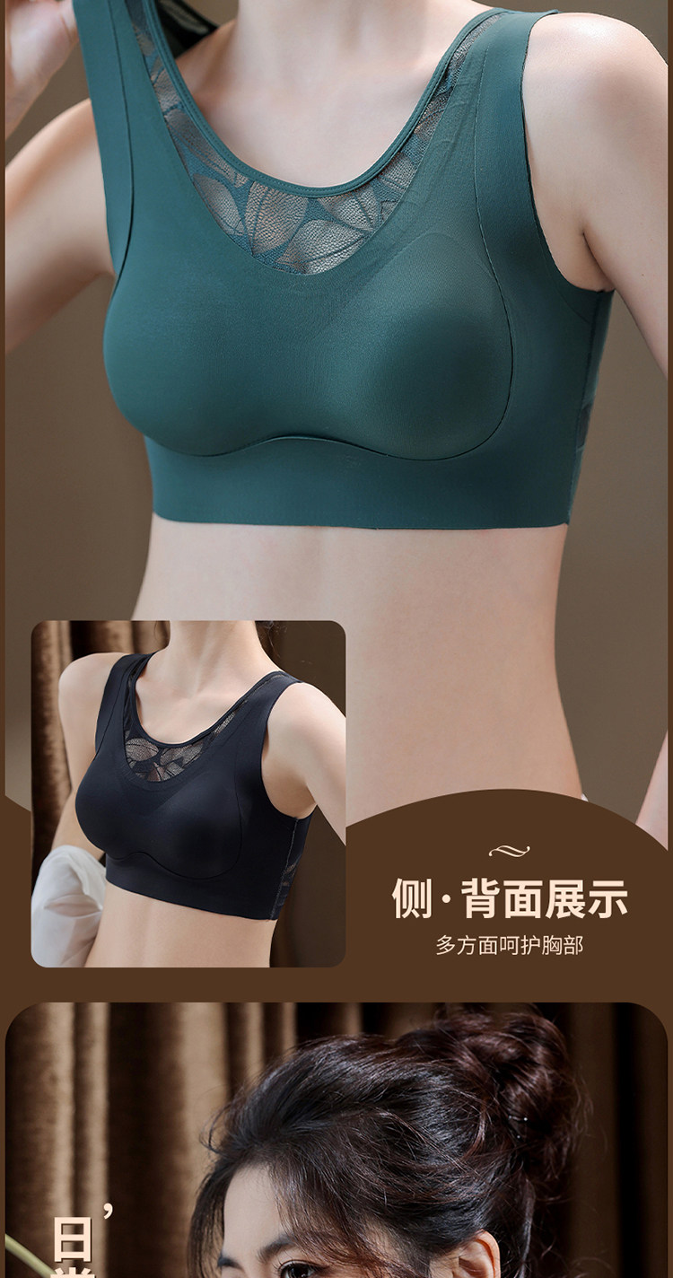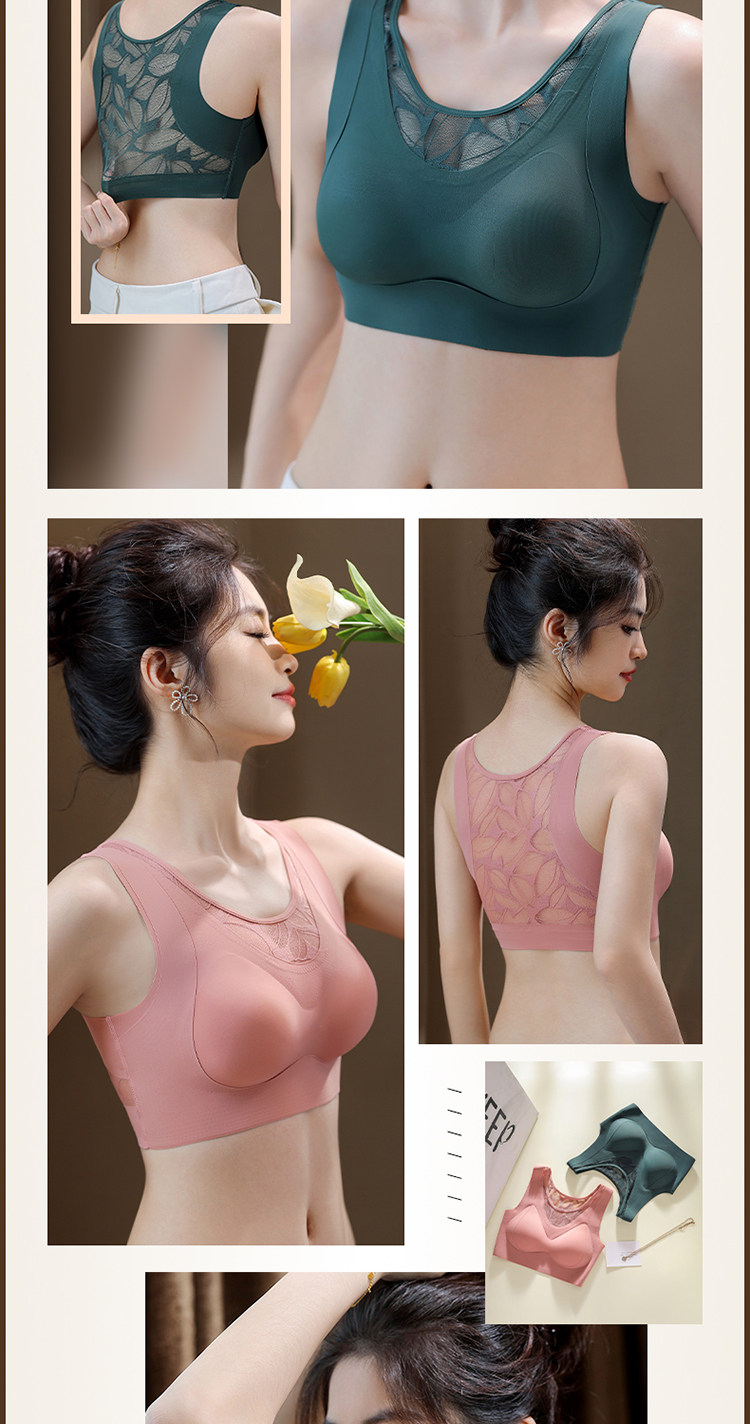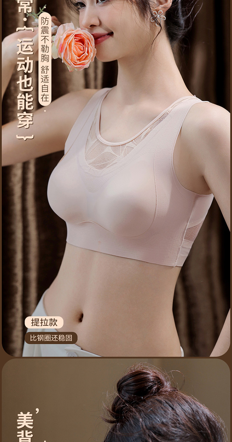 얇은 원활한 속옷 여성 조끼 스타일 스포츠 피트니스 고정 컵 레이스 원피스 백 지원 처짐 방지 브래지어스토어 가기