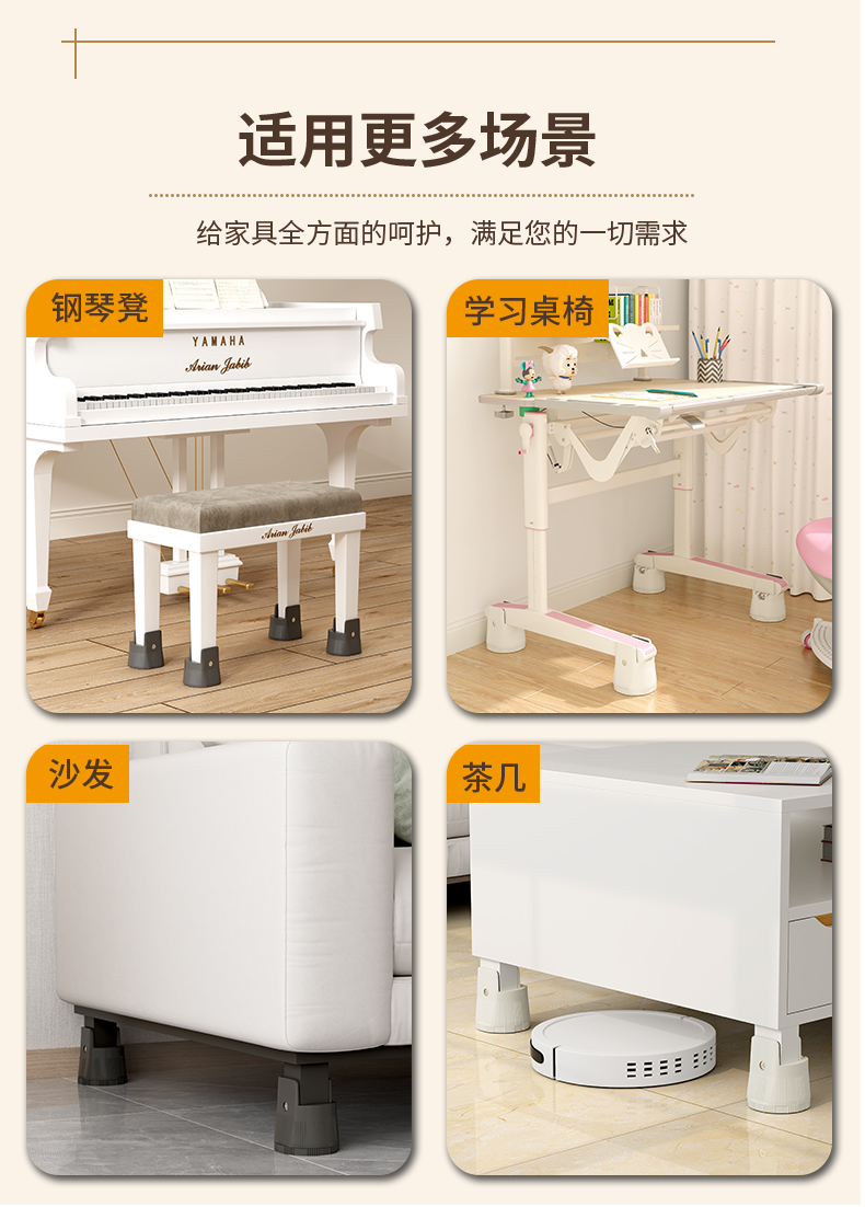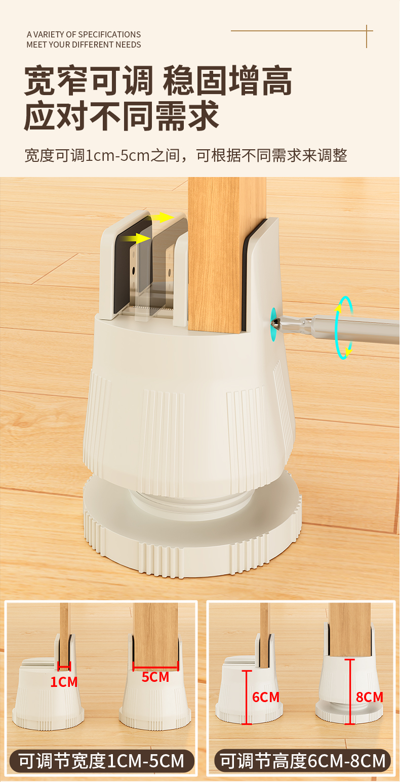 조절 가능한 테이블 발 패드로 테이블을 높이거나 높이를 높일 수 있습니다. 커피 테이블, 소파, 침대 발, 의자, 의자, 테이블 다리, 무소음 및 미끄럼 방지