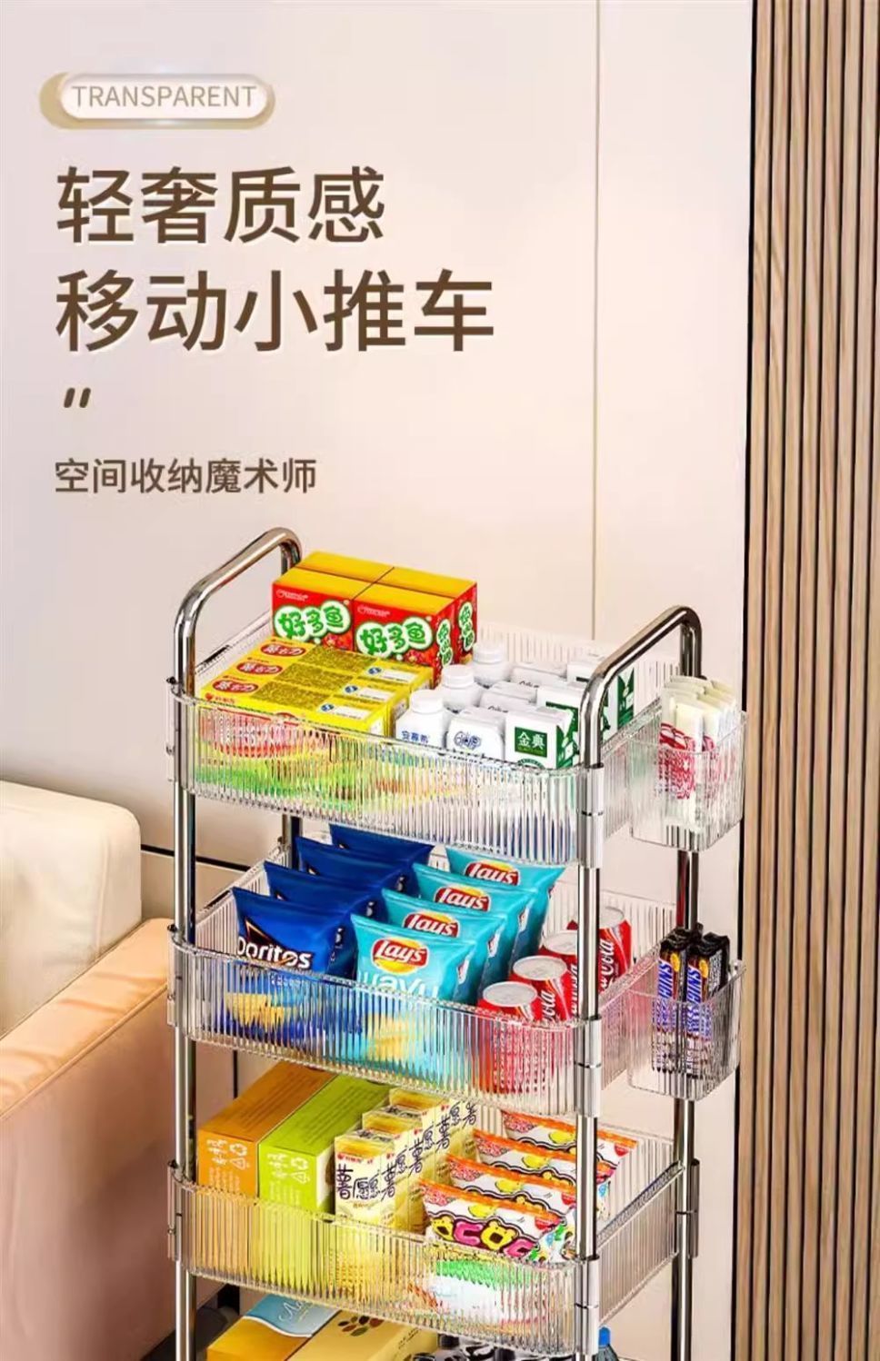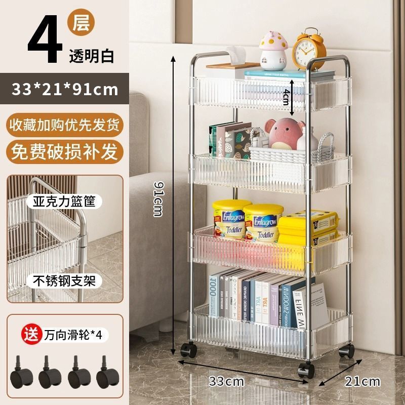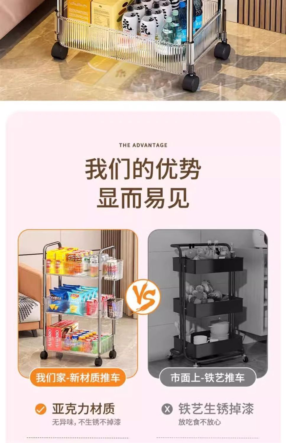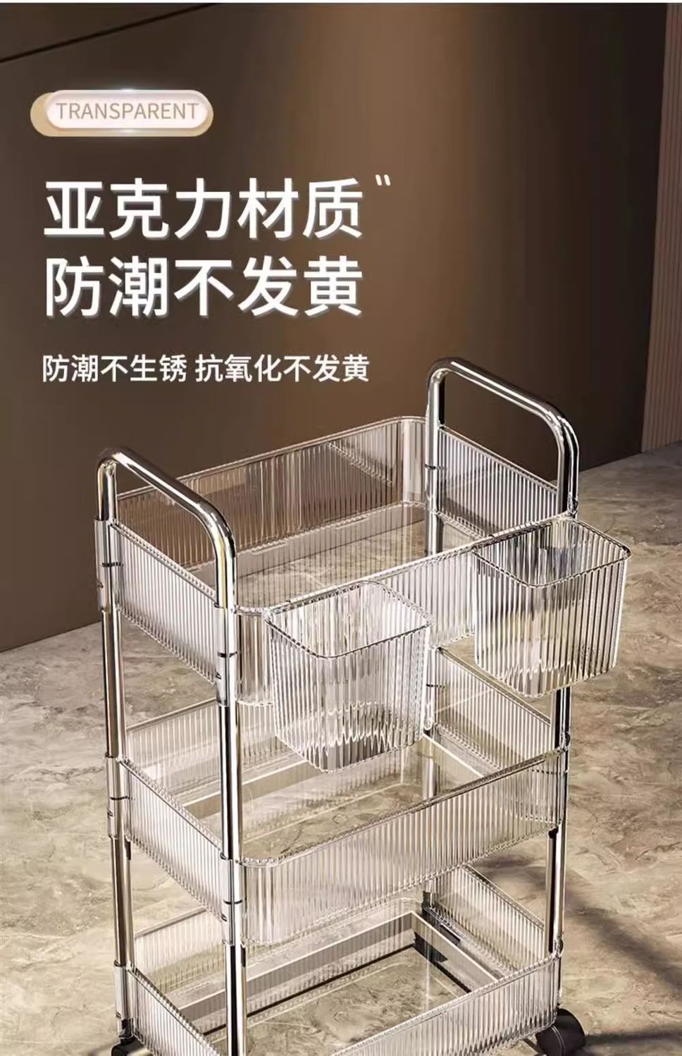 가벼운 고급 아크릴 투명 스토리지 랙 홈 거실 주방 스토리지 랙 간단한 현대 트롤리 스토리지 랙