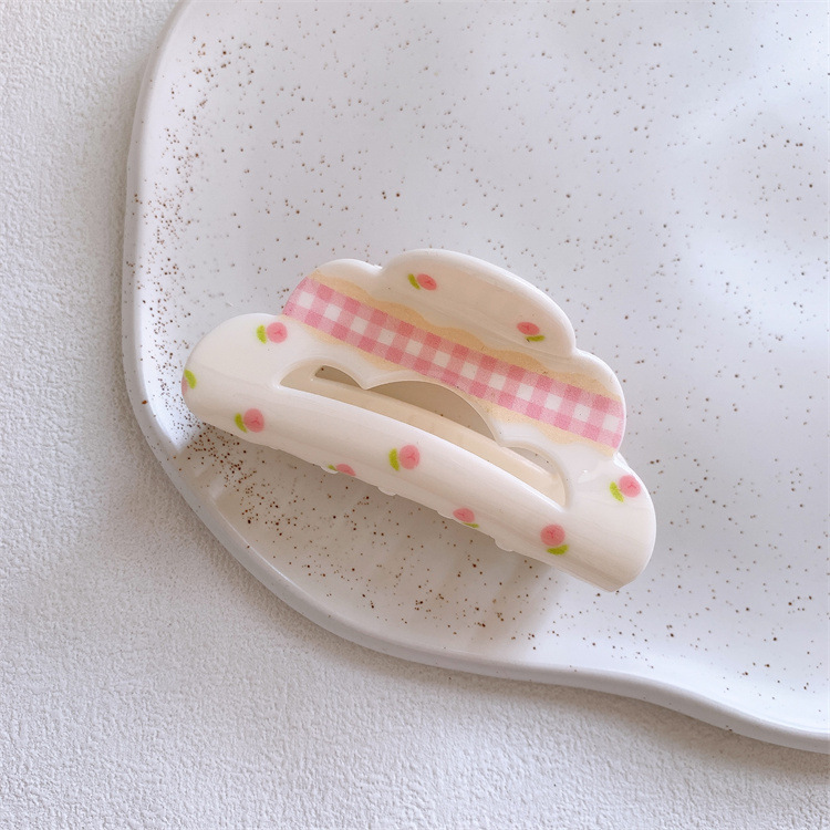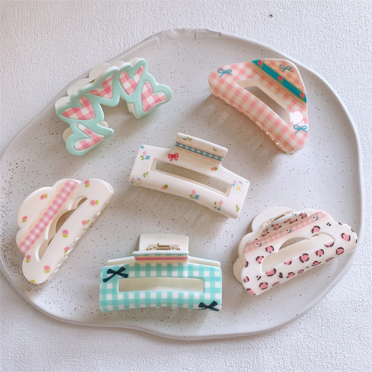 크리미 달콤한 소녀의 꽃 무늬 활 그랩 클립 아크릴 머리핀 상어 클립 머리 디스크 머리핀