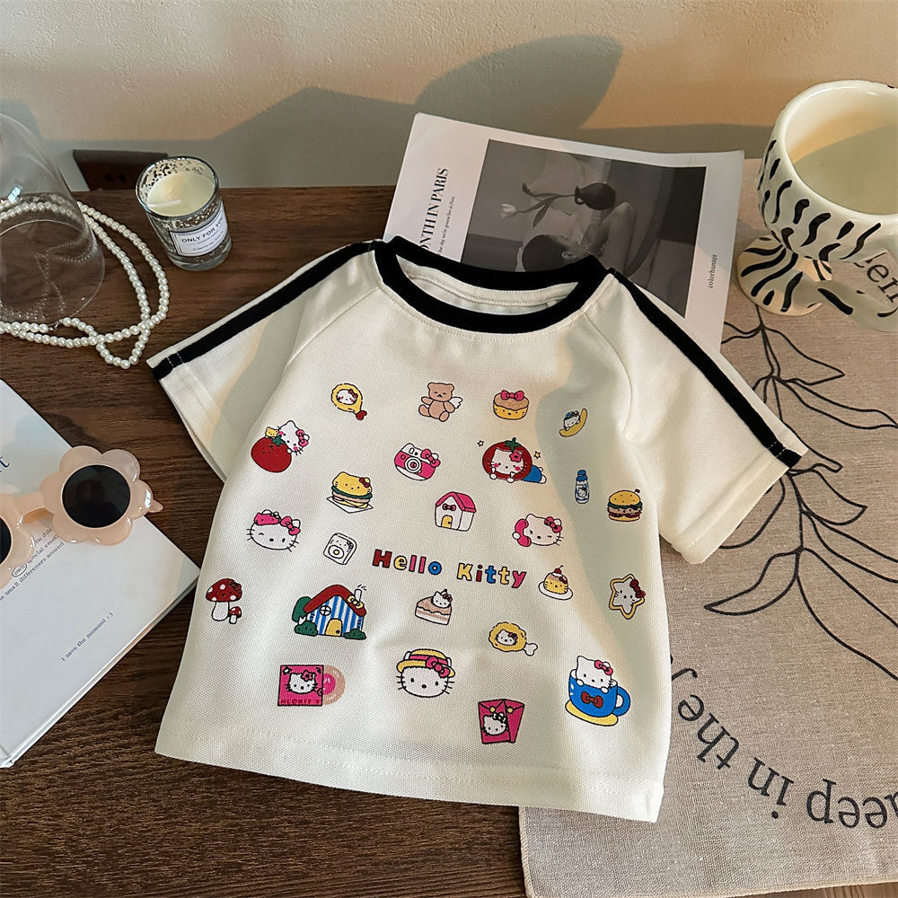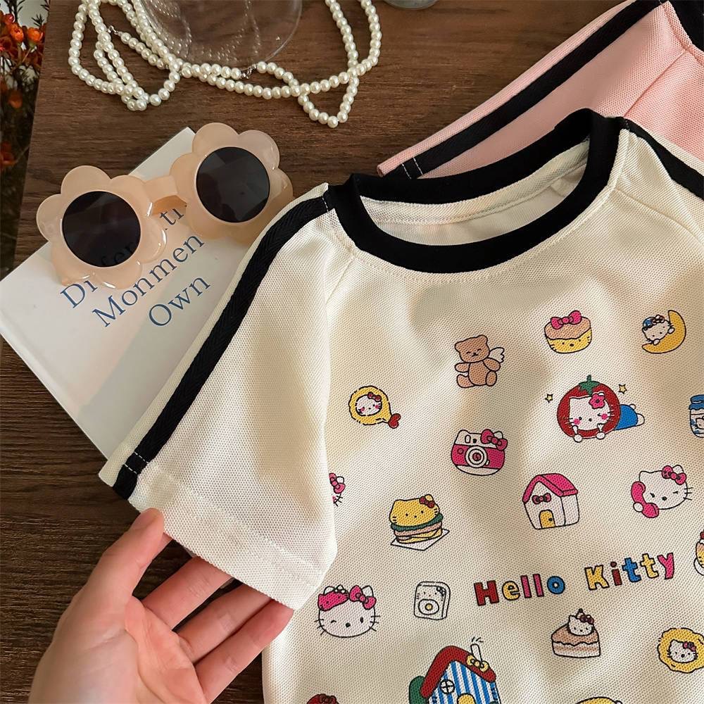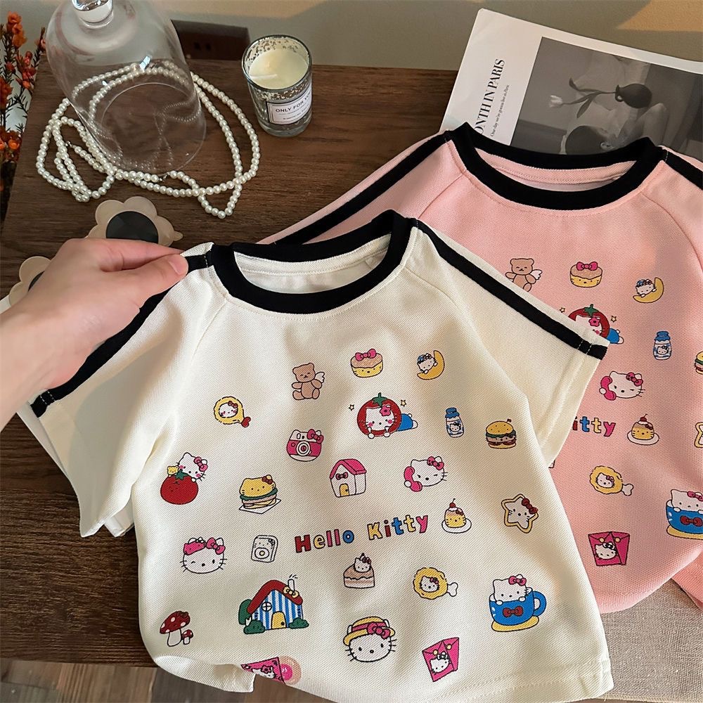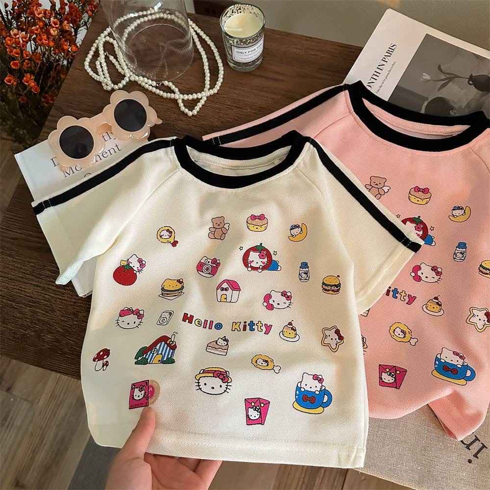 2025 소년과 소녀 만화 둥근 목 짧은 소매 탑 여름 유행 짧은 소매 핑크 하우스 새로운 어린이 라글란 소매 티셔츠