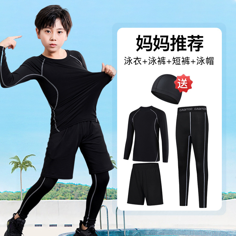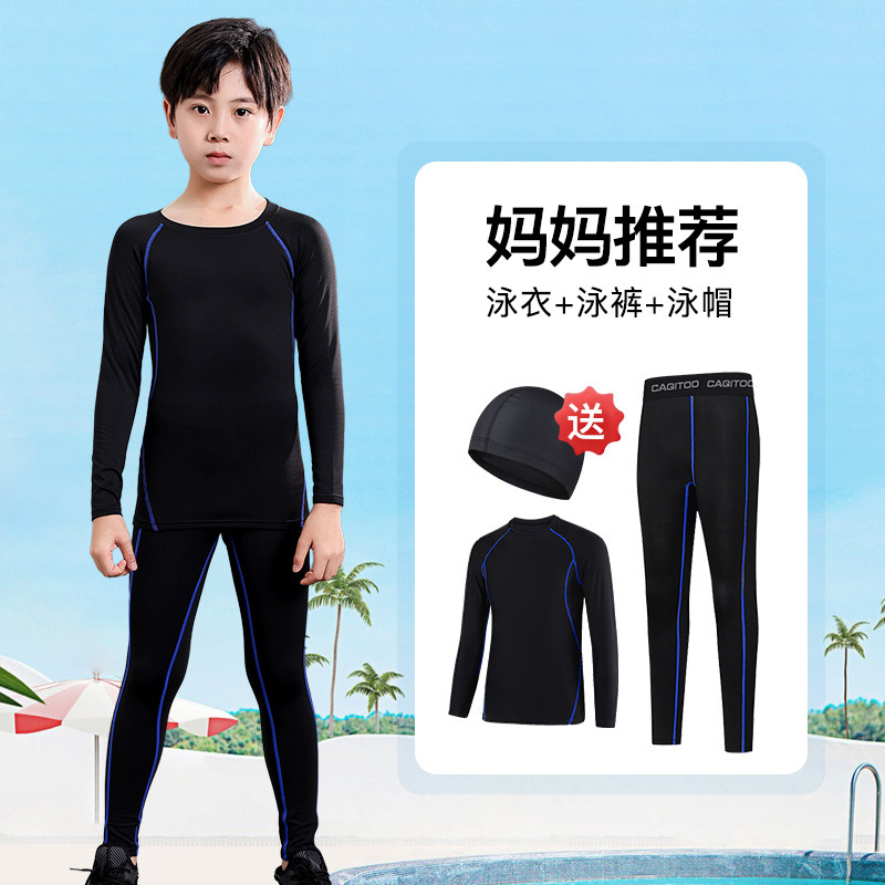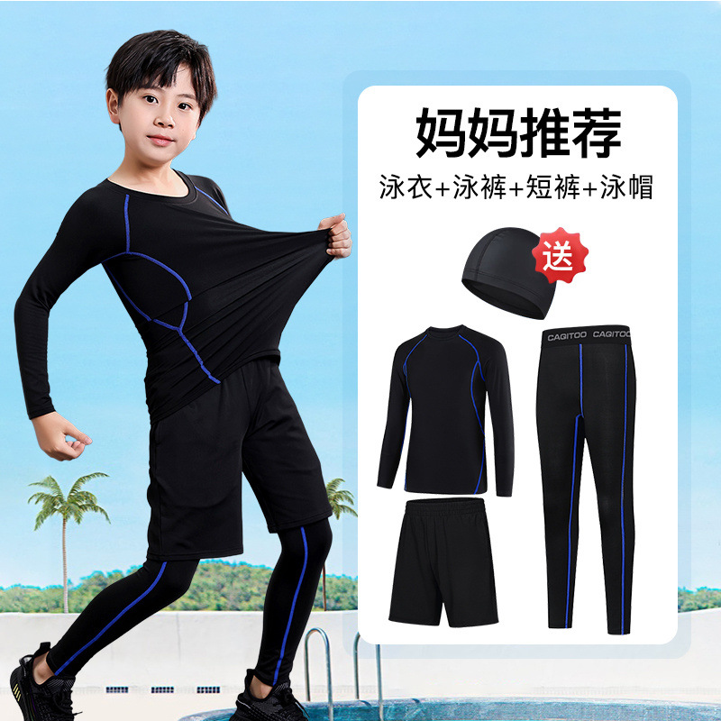 남아용 긴 아동용 수영복, 긴팔 수영복, 중대형 아동용 3피스 수영복