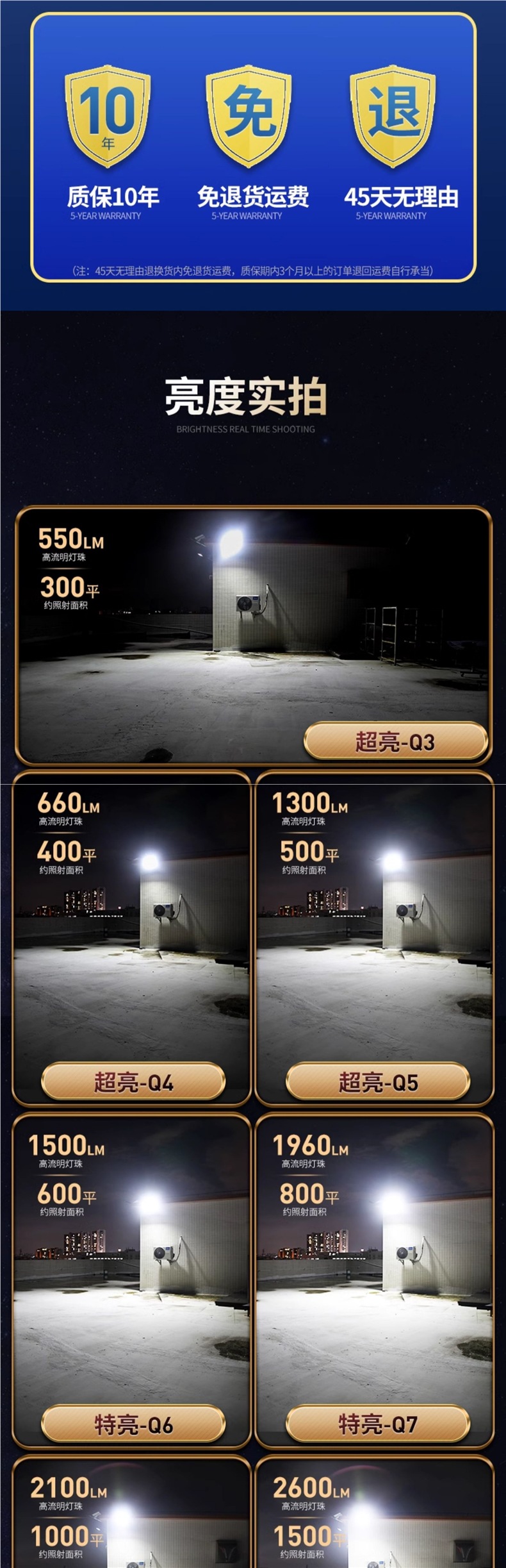 • 폭발적인 Q4 - 가상 표준 8000W보다 밝음 [약 400평방미터] 연장 코드 10m개