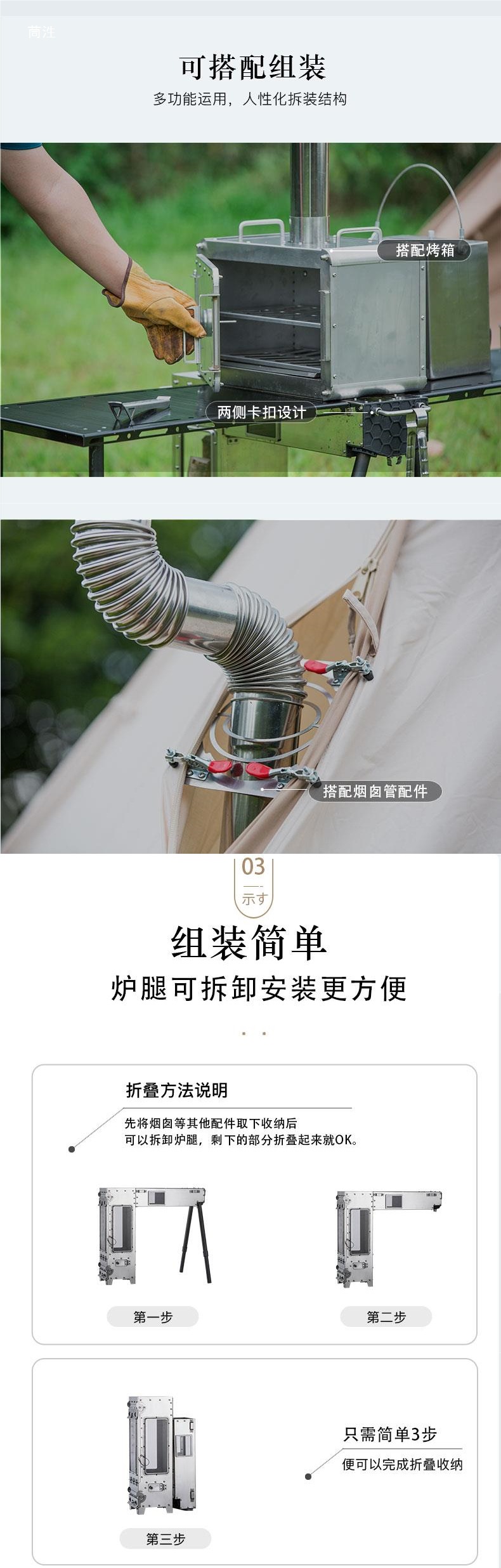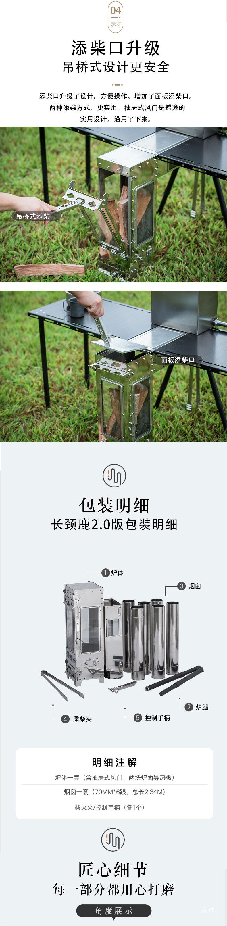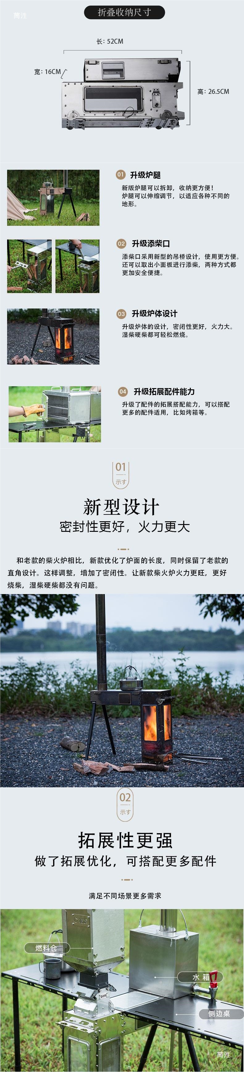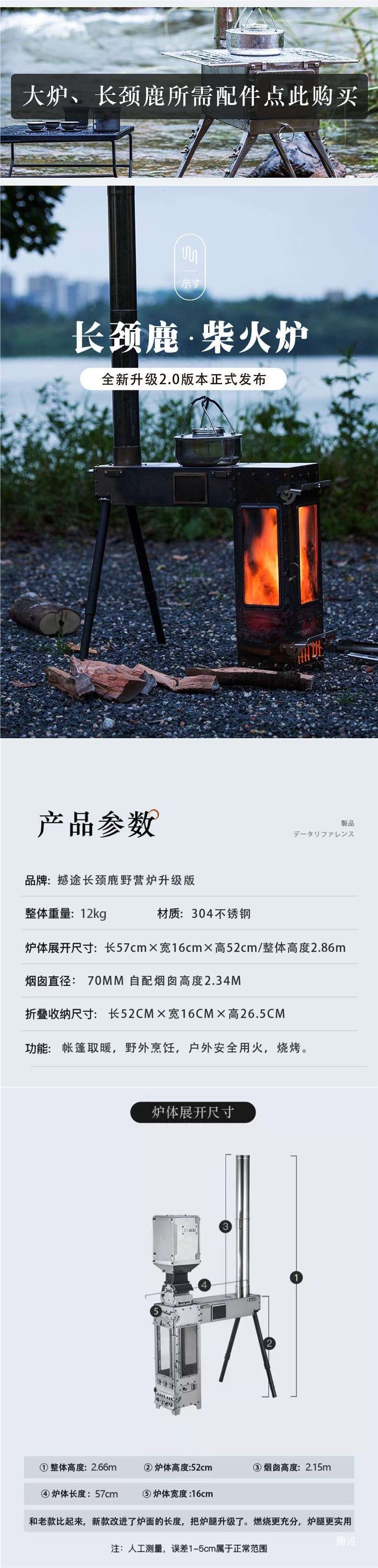 야외 2세대 신형 기린 장작 난로, 확장형 피크닉 난로, 다기능 텐트, 다인용 피크닉 난로