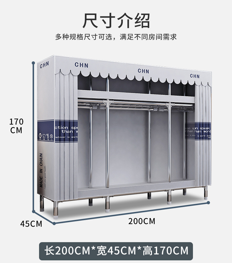 간단한 옷장 임대실 강철 프레임 보관 두꺼운 조립 가정용 내구성 강철 파이프 침실 두꺼운 강화 옷장 공장스토어 가기