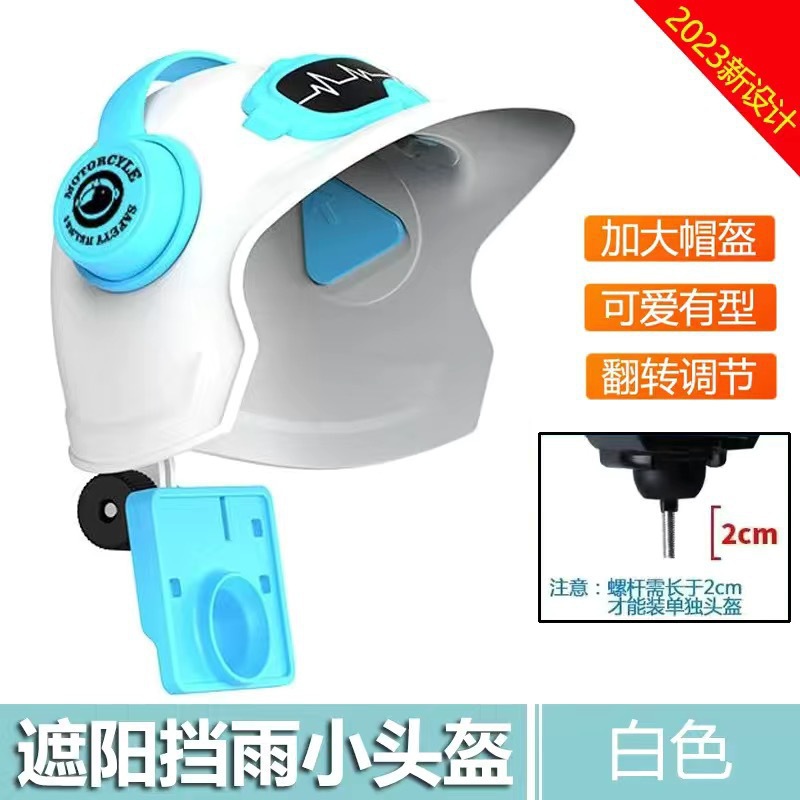 • 핸들바 모델(1초 픽 앤 플레이스 소재 업그레이드) 싱글 소형 헬멧(방수 및 자외선 차단) 흰색
