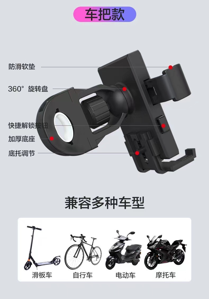 • 핸들바 모델(1초 안에 재료 업그레이드 선택 및 배치) 단일 휴대폰 홀더(버릴 수 없음)