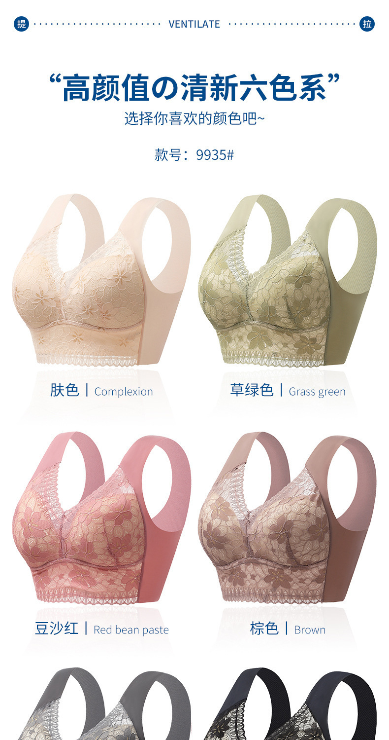 대형 가슴 작은 노 컷 플러스 사이즈 속옷 여성의 비 강철 링 레이스 아름다운 백 푸시 업 처짐 방지 스포츠 조끼 브래지어