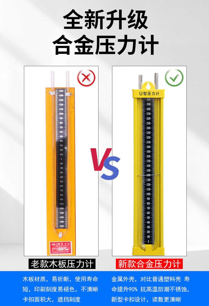 석탄 광산 특수 U 자형 압력계 합금 플렉시 유리 수압계 포지티브 및 네거티브 압력 기밀 차압 검출 장비