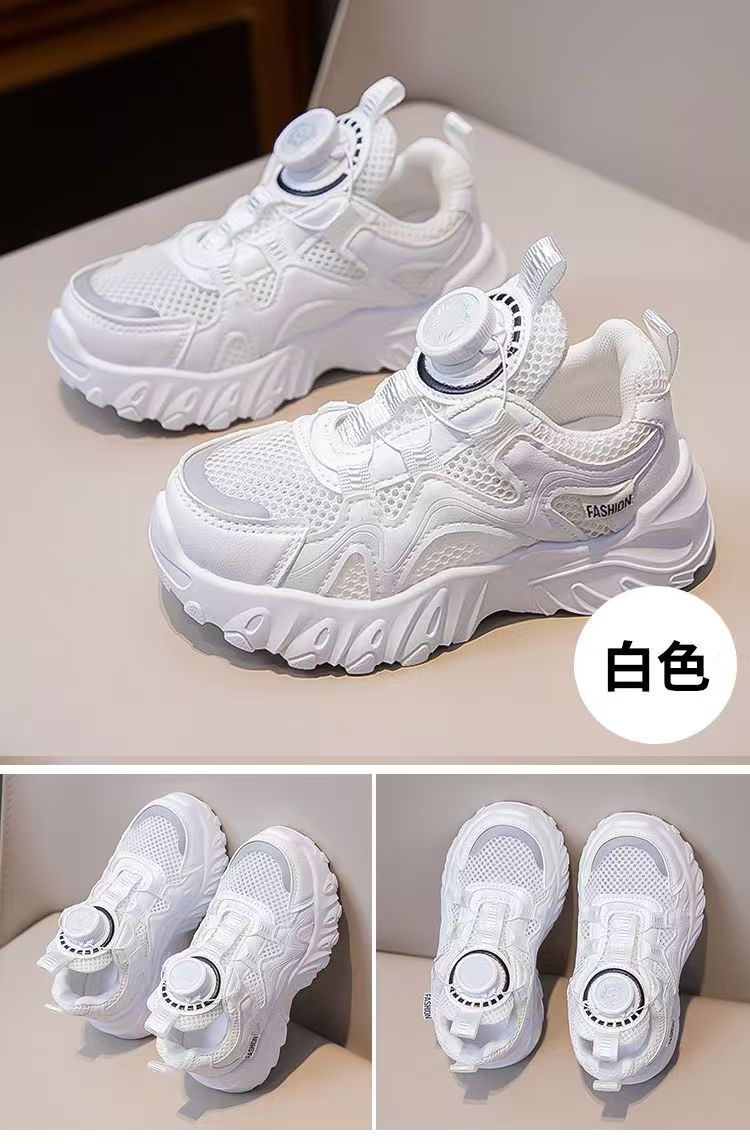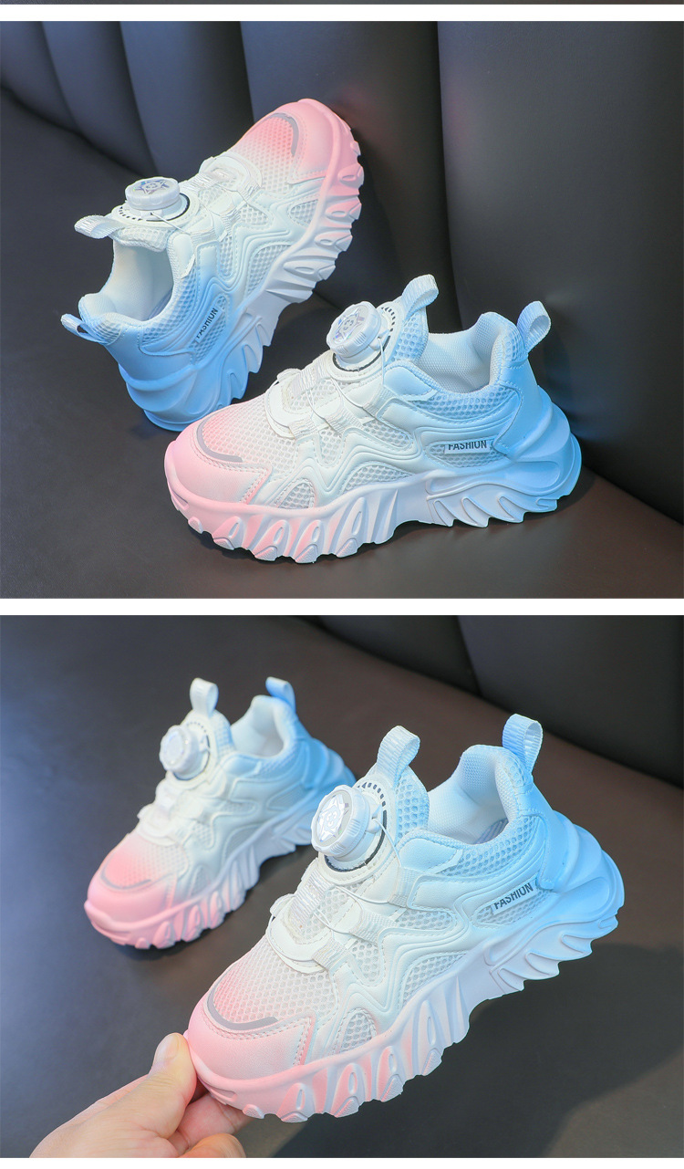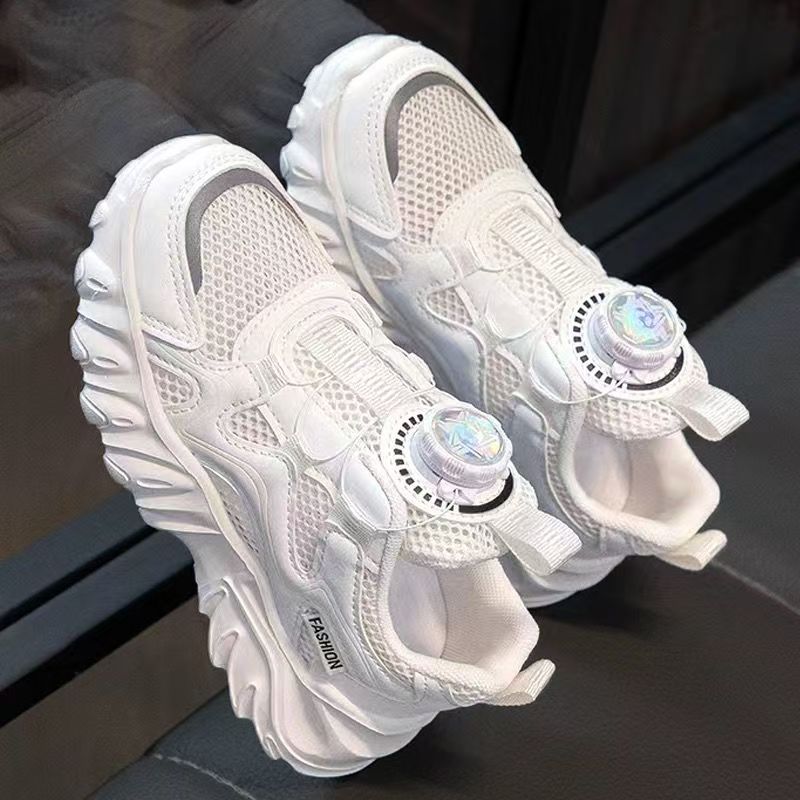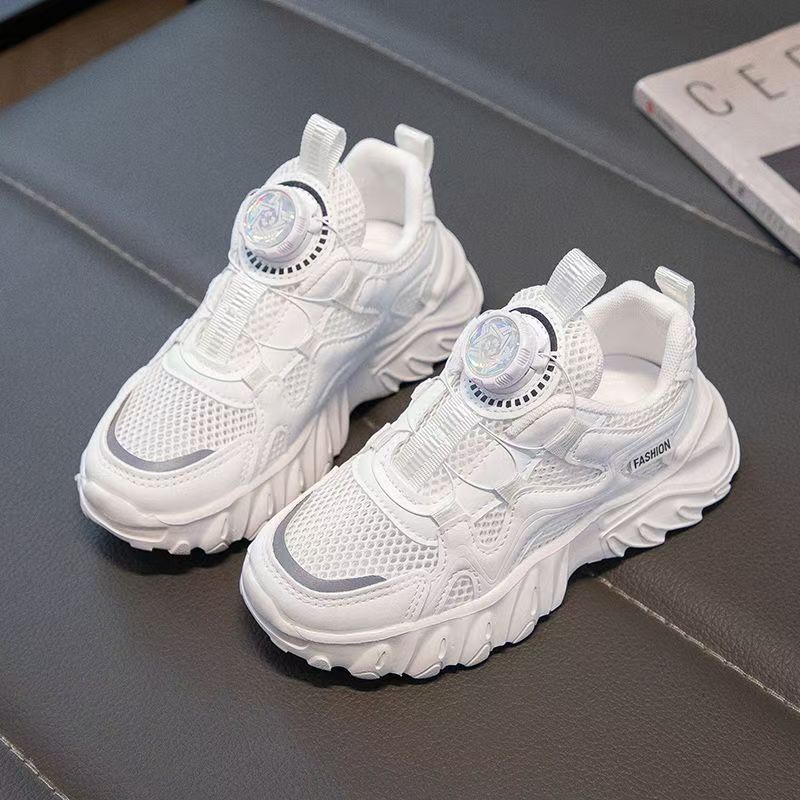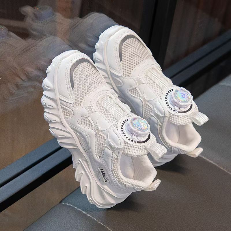 소년과 소녀 운동화 2023 봄과 여름 한국 스타일 인기 패션 회전 버튼 메쉬 통기성 중대형 어린이 아빠 신발